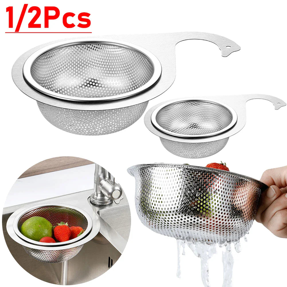 1/2 PCS Stainless Steel Sink Drain Strainer Basket Dry And Wet Separation Hanging Sink Strainer Colander Drain Basket for Filter Kitchen Waste & Wash Vegetables Fruits