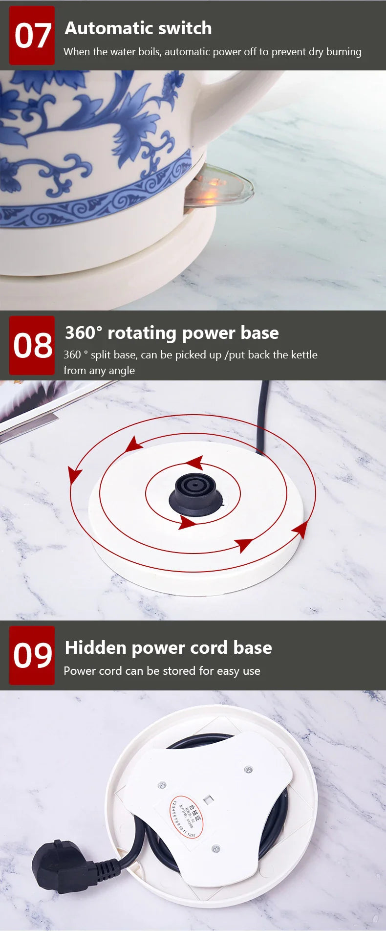 1.5L Electric Ceramic Kettle Water Boiler Water Heating Device Teapot Porcelain Kettle Automatic Power Off 220V Anti-dry burning