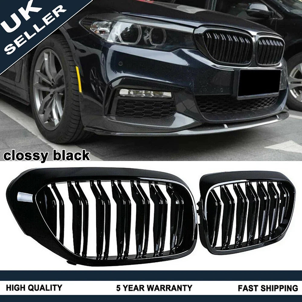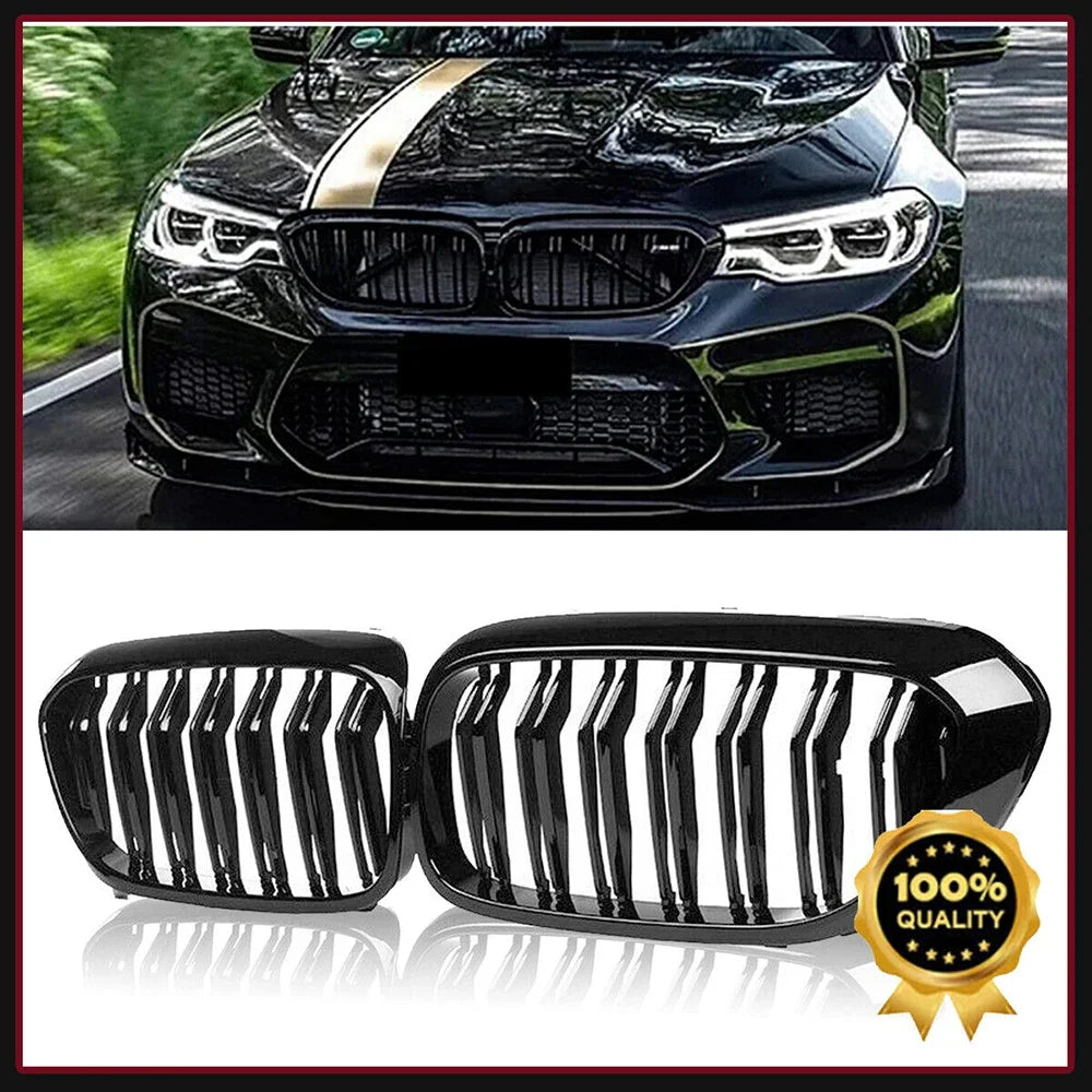 1 Pair Grille For BMW G30 G31 5 Series Sport M5 Front Kidney Dual Slats Racing Grill Gloss Black Replacement Part Double Line