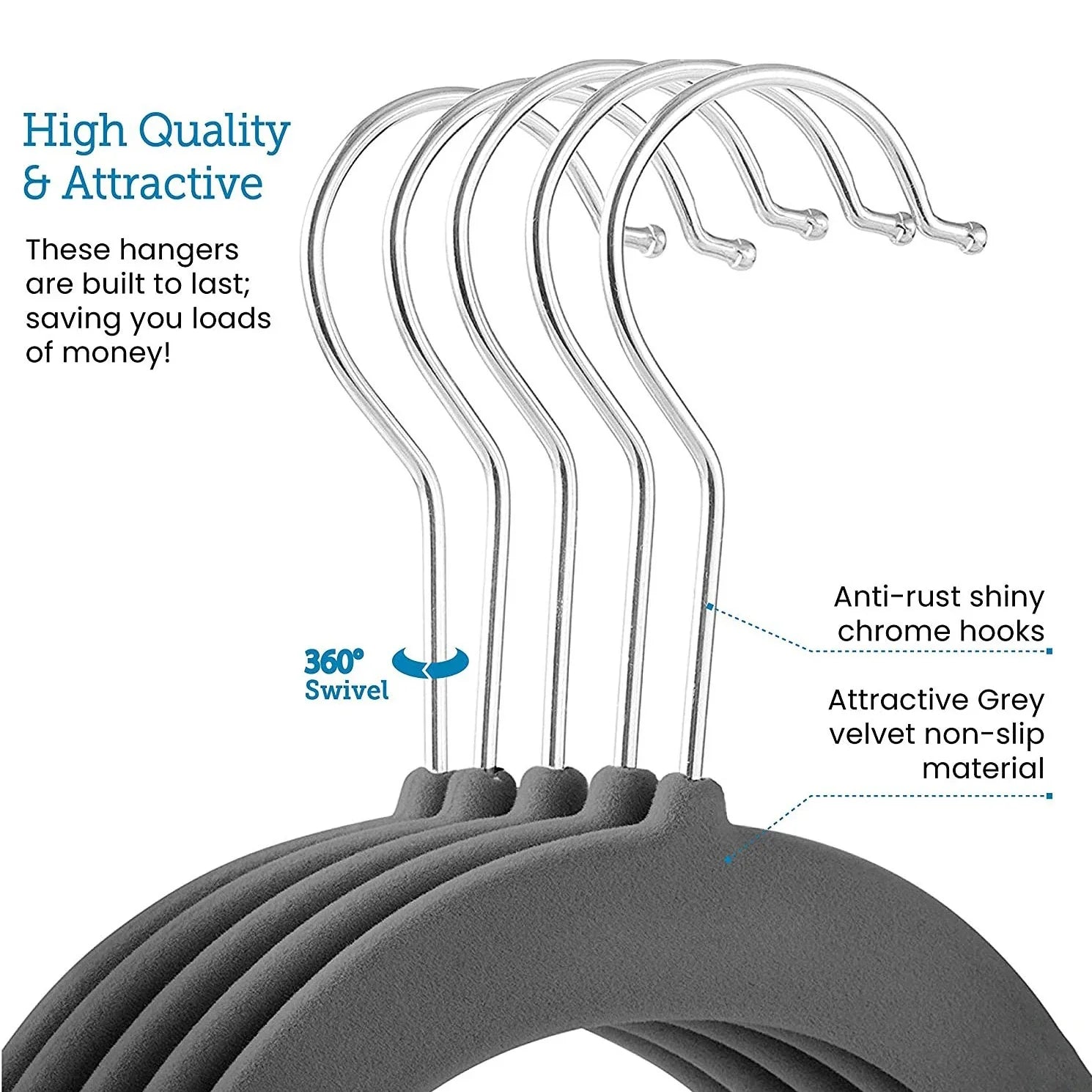 10/5PCS Gray Wrinkle Resistant Adult Plastic Coat Hanging Flocking Multi-Functional Anti-Skid Hanger 45cm Magic Hanger