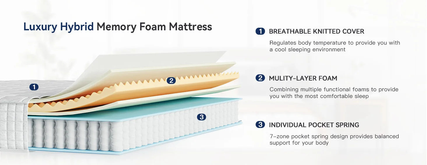 10 Inch Hybrid Mattress with Breathable Memory Foam and Individually Pocket Spring - Medium Firm, White