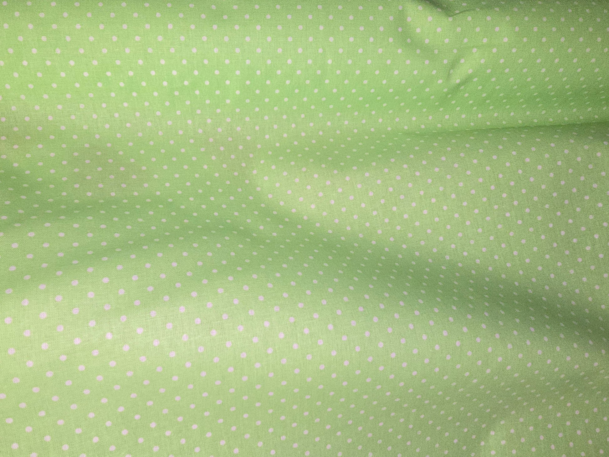 100% Cotton Apple Green Dot on White Super 150cm width perfect for Summer makes!
