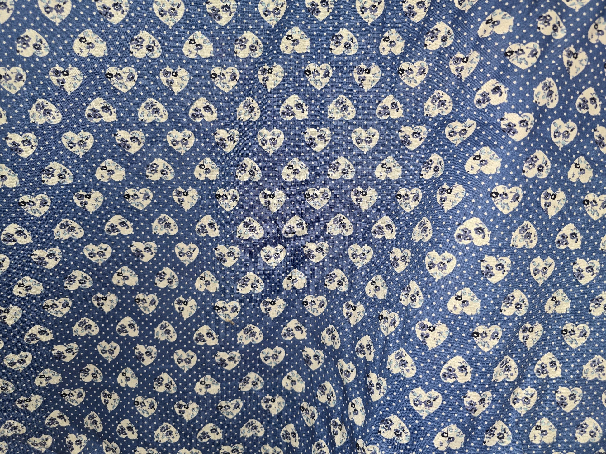 100% Cotton Flower Hearts on White Dot and Blue! 135cm width