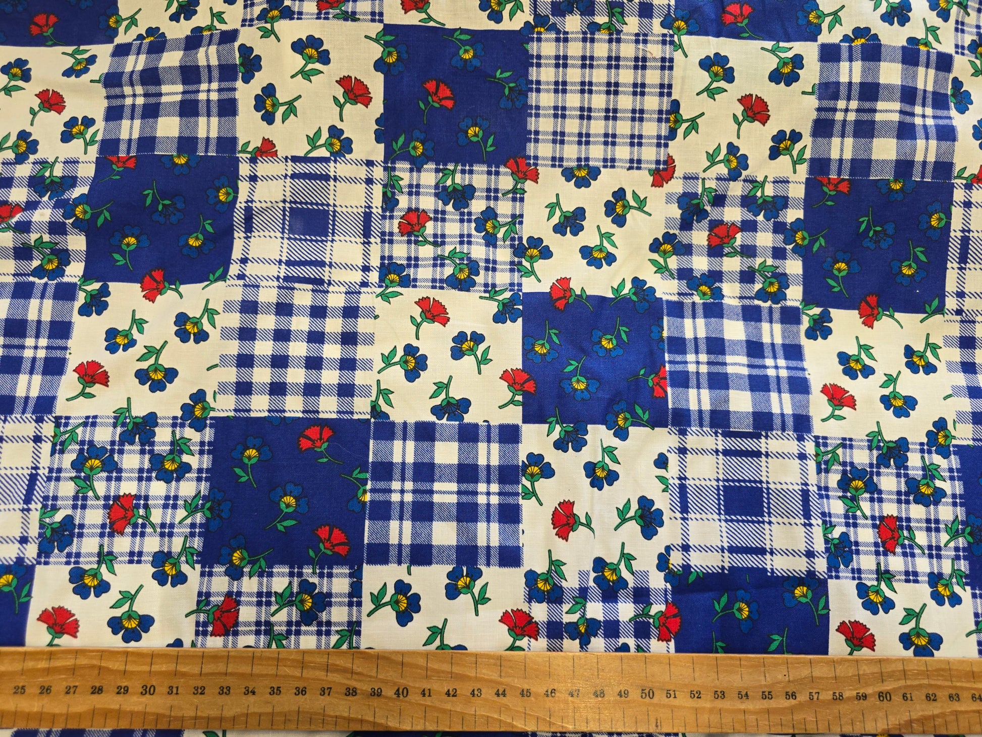 In red with teddy bears, flowers and hearts in an English patchwork design