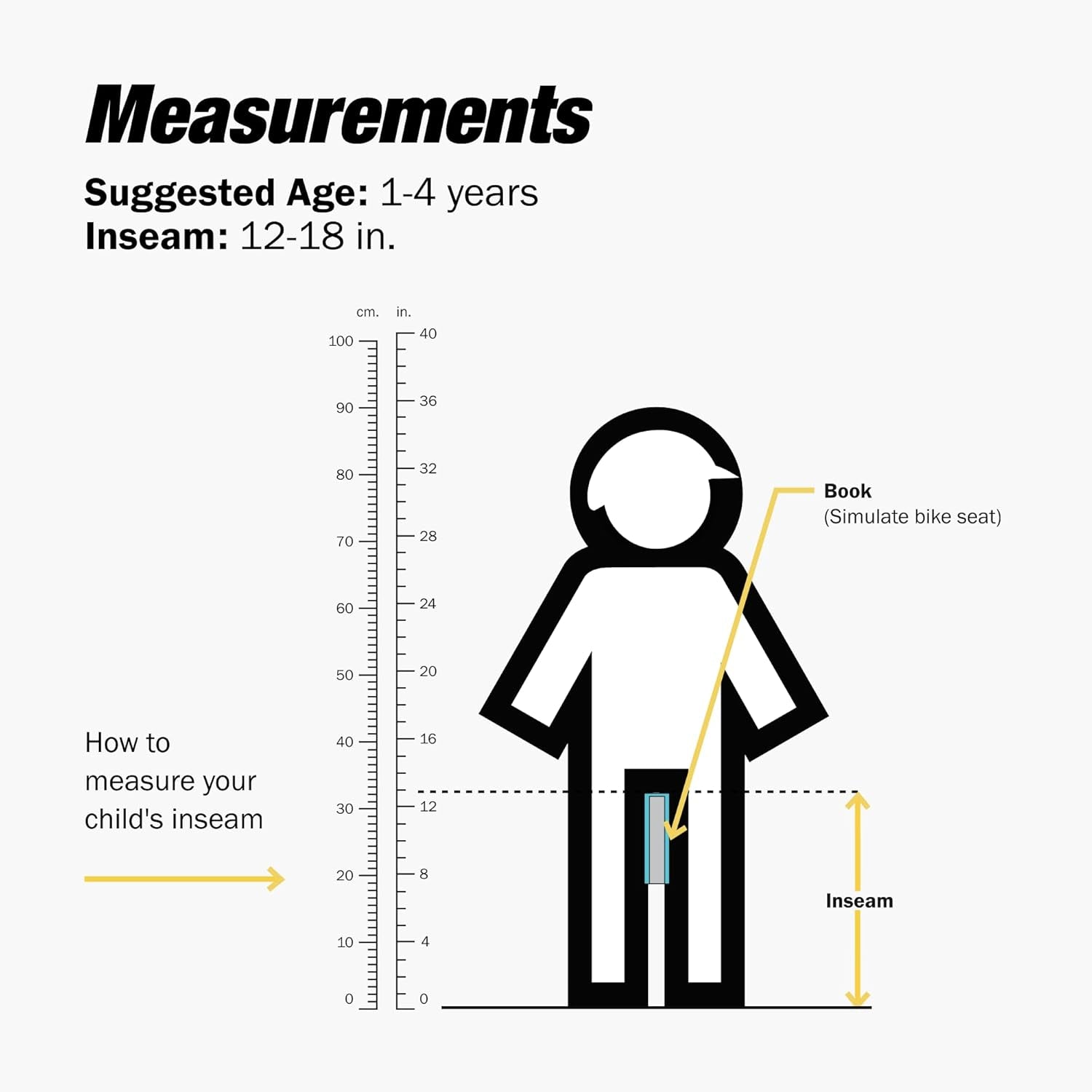 The seat and handlebar heights on our Balance Bikes adjust to accommodate ages 1 to 4 years, or a 12-18 inch inseam.