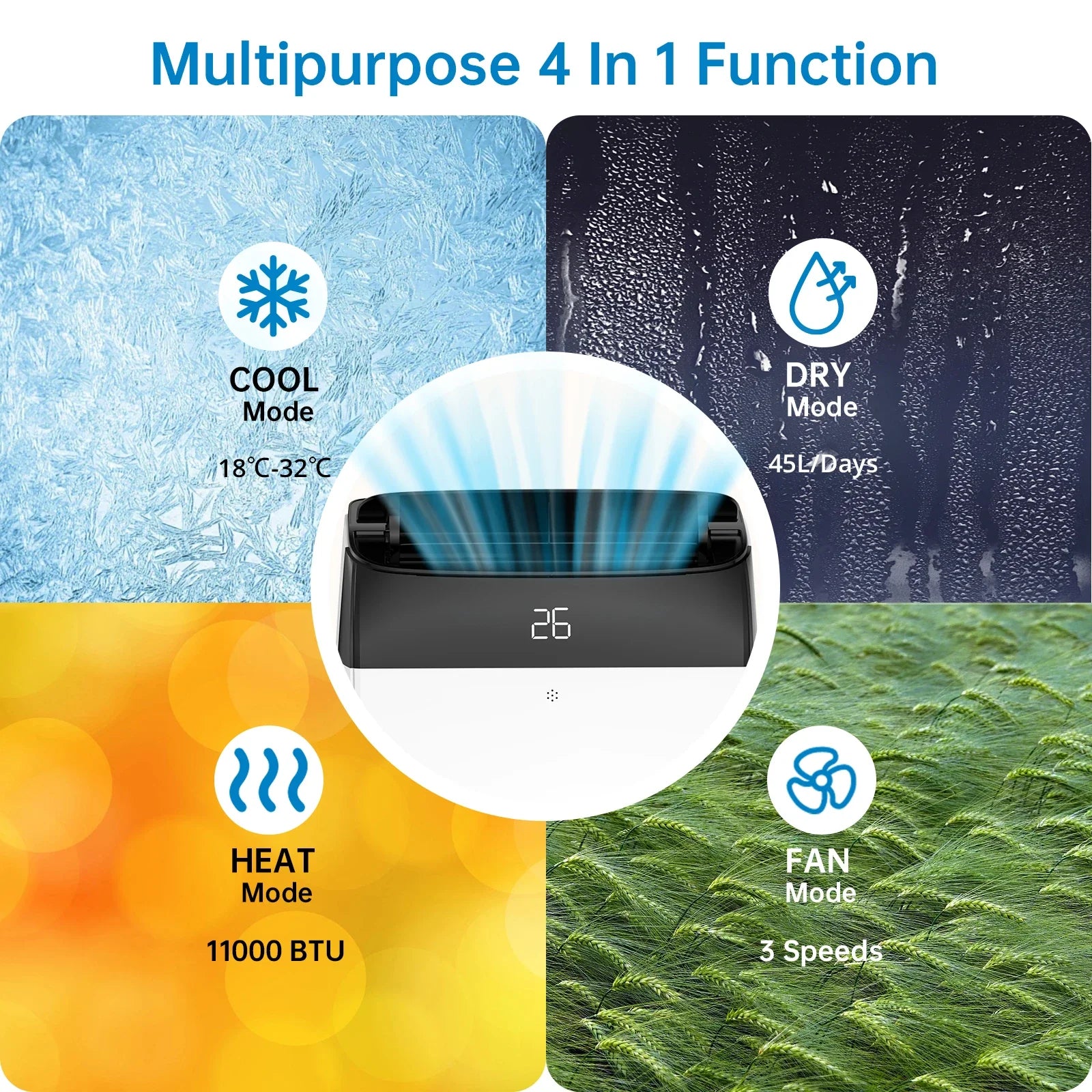 12000Btus 4 In1 Air Conditioner, Portable Air Conditioner, Dehumidifier 45L/Day, Heating, Cooler, Fan with 3 Speeds, For Home