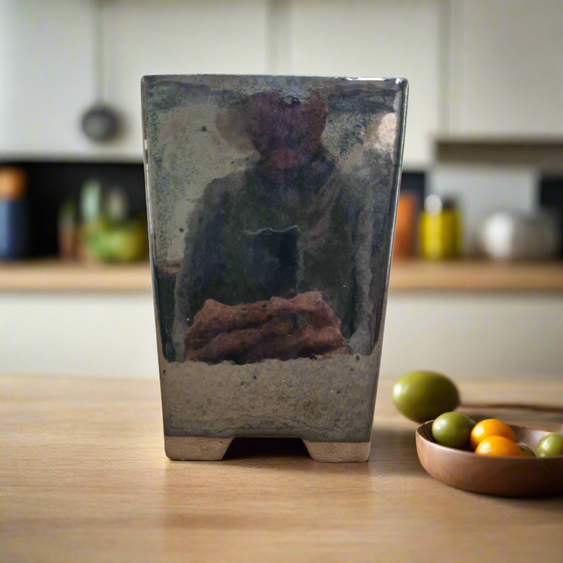 13cm Glazed Bonsai Pot | Cascade | 13cm x 19cm | Silver Black