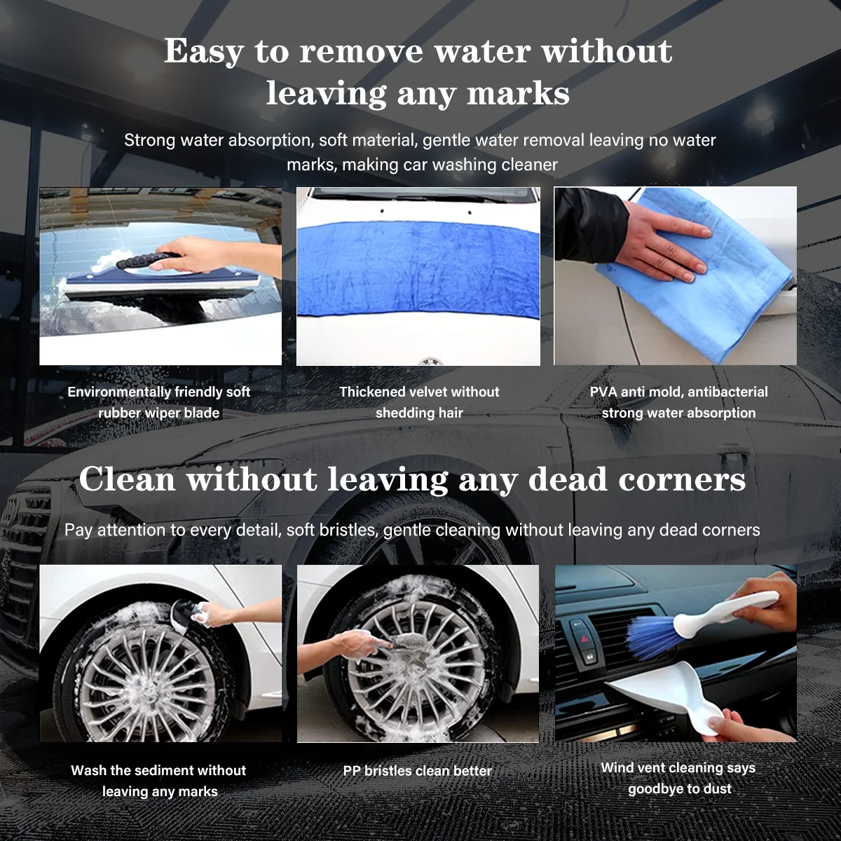 HIGH QUALITY-This car washing kit is made with soft & durable microfibre to carefully clean your car.