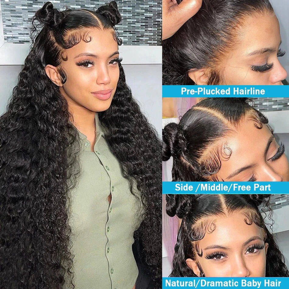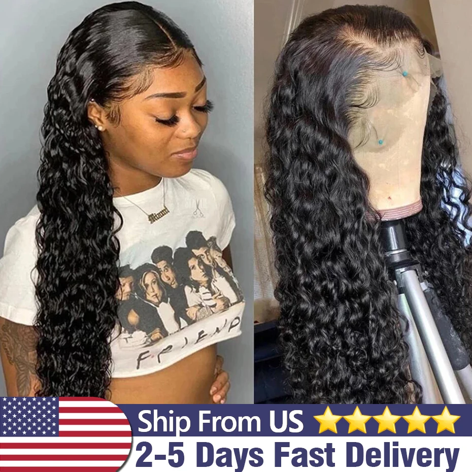 13x4 Curly Lace Frontal Wigs Curly Human Hair 30 40 Inch Hair 13x4 Deep Water Wave 360 Lace Front Wigs For Brazilian Women