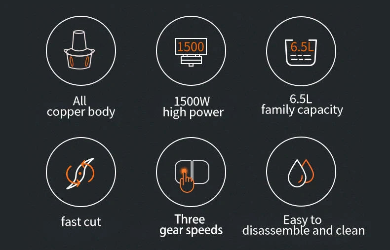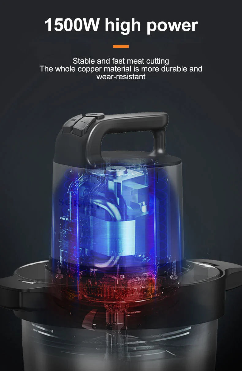 1500W 6.5L Stainless Steel Kitchen Meat Grinder 3 Gears Powerful Motor 4-Layer Blade Vegetable Crusher Onion Garlic Grinder