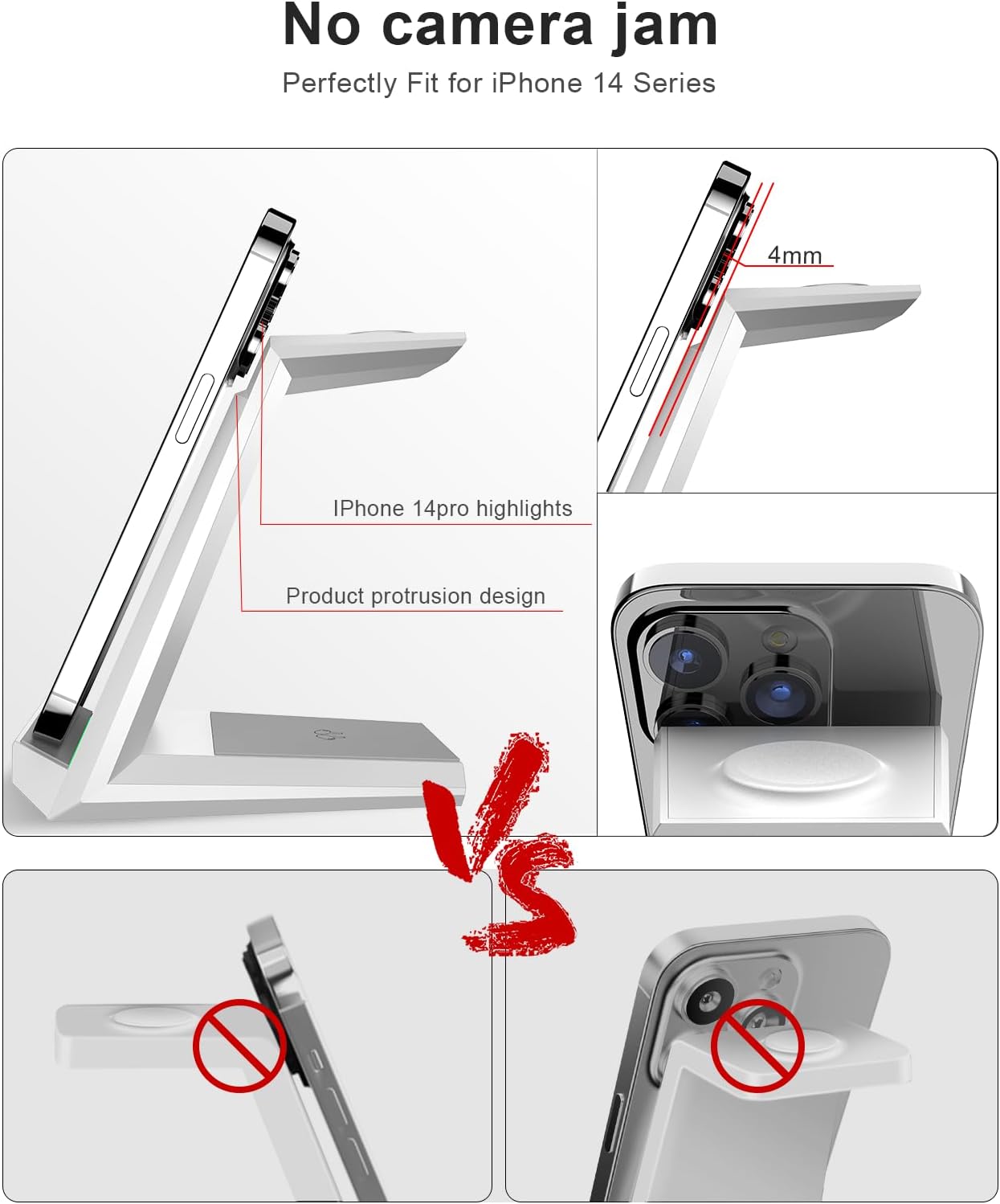 - Designed to Perfectly Fit for Phones with Protruding Camera: With continuous development of smartphones, the rear cameras are with higher HD, bigger and more protruding. We specially left a recessed part to make iPhone 15/16 and similar phone models to fit snugly. If with normal wireless charger, the camera will prop up on the smart phone charging pad, a gap between the mobile phone and charger stand will make it lose charging easily.