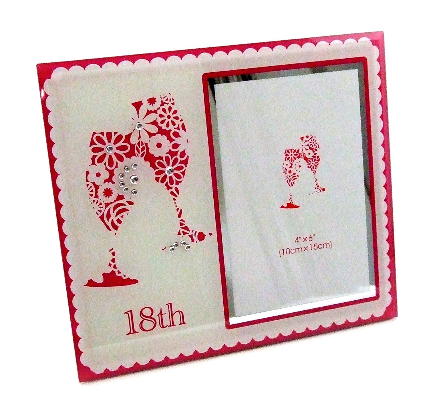 - 18th Birthday Pink & White Champagne Flute 4" x 6" Photo Frame With Clear Diamante Crystals