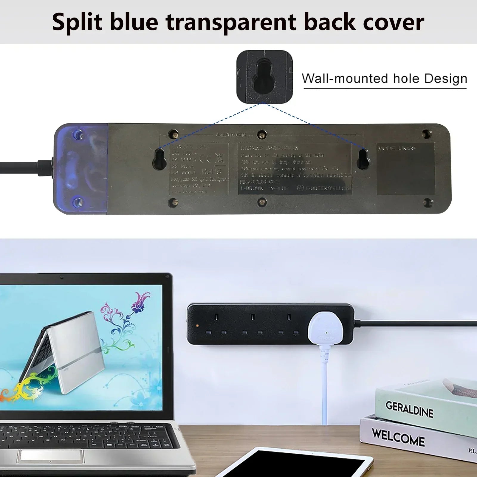 1.25mm² copper wire is thicker than 1.0mm² extension cable in the market. It can suppot 3250W Rated power (13A/250V), so that you can use it with high-power household appliances with peace in mind.