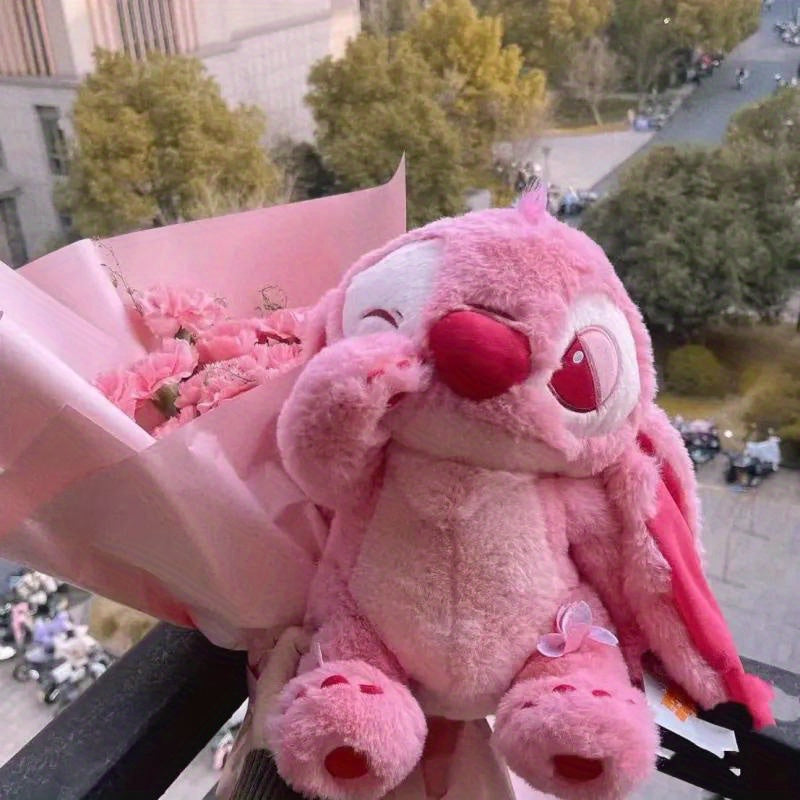 1PC Kawaii Stitch Character Plush Toy - Bright Pink Anime-Inspired Soft Doll, Polyester Desk & Bed Decor Figurine for Festive Gifting, Suitable for Ages 14+ - Ideal for Christmas & Halloween