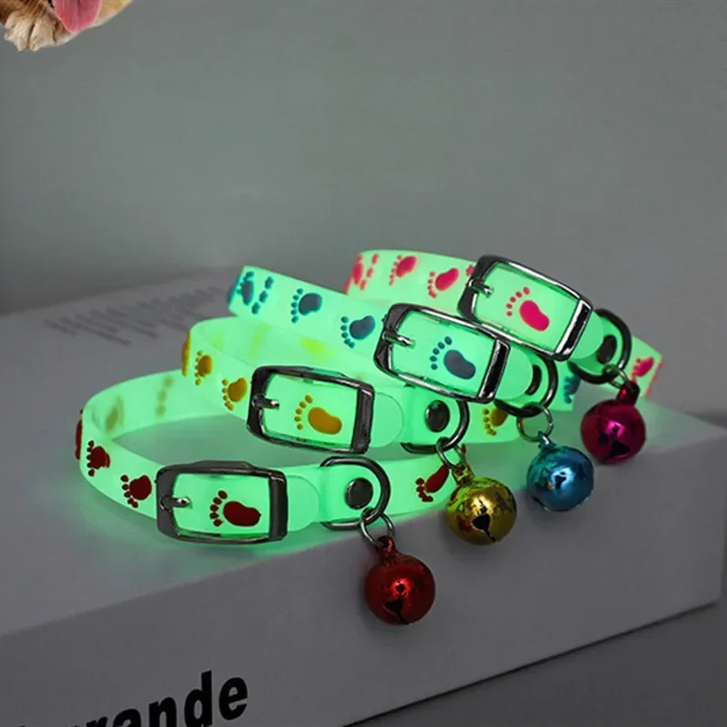 1PC Luminous Cat Necklace Glowing Small Dog Collar Anti-Loss Fluorescent Silicone Bell Collar Neck Ring Pet Cats Accessories
