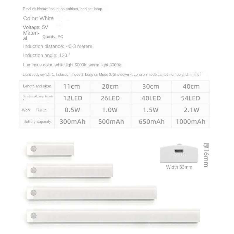 1PCS Human Ultra-thin Sensing Intelligent USB Charging Sensing Light Strip Display Cabinet Kitchen Wardrobe Dimming Light