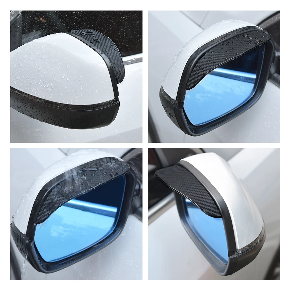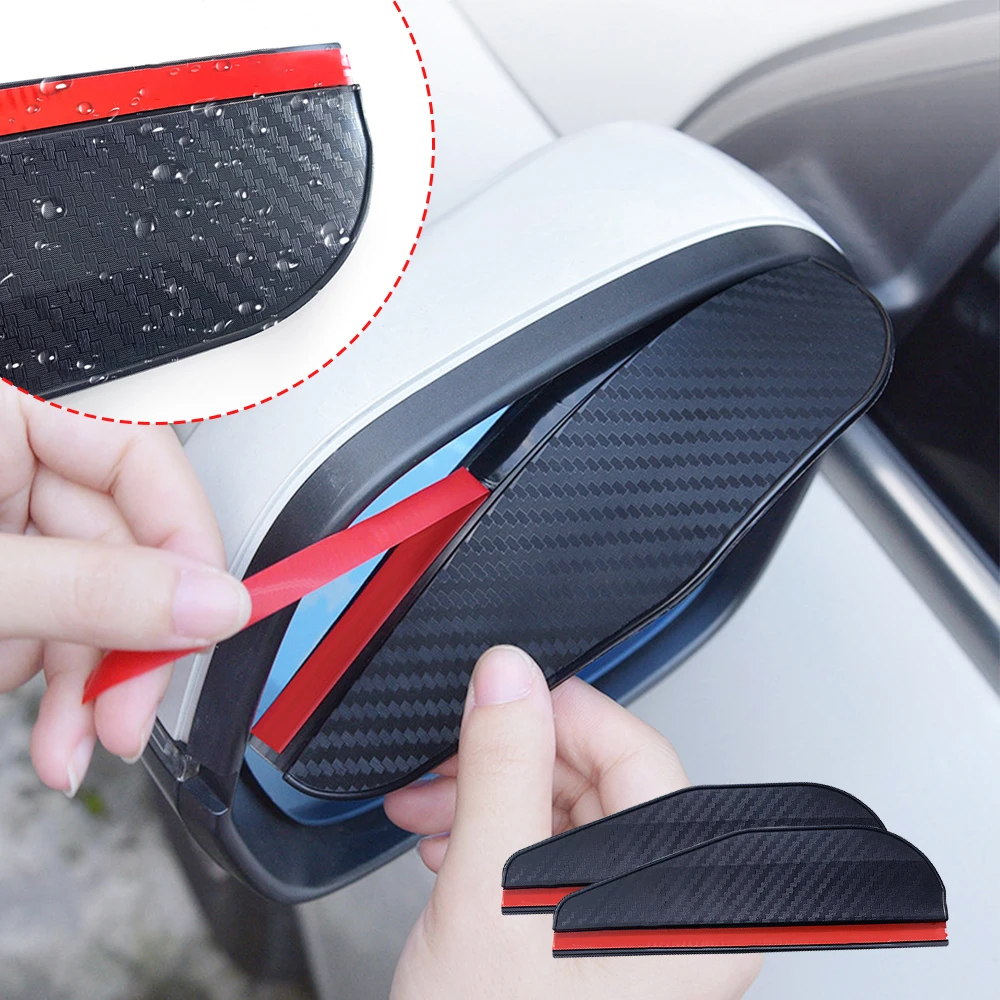 2 Pcs Car Carbon Fiber Rain Brow Rear View Mirror Rain Cover Self-Adhesive Sun Visor Clear Vision Tools Auto Mirror Accessoriesies