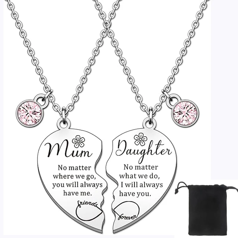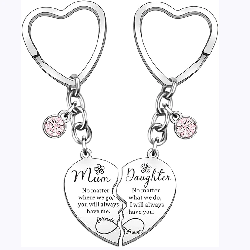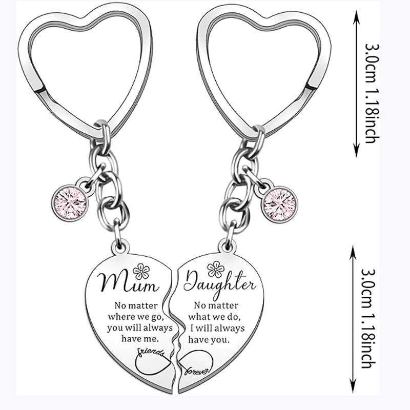 2 Pcs Mother Daughter Heart Matching Keyring Necklace Set Gifts For Mum Mothers Day Daughter Birthday Presents From Daughter