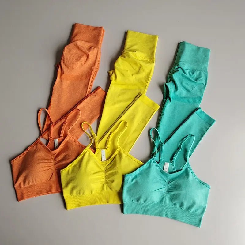 Upgrade your workout gear with our 2 Piece gym Workout Clothes for Women! Designed for comfort and style, this seamless leggings and sports bra set is perfect for all your athletic activities.