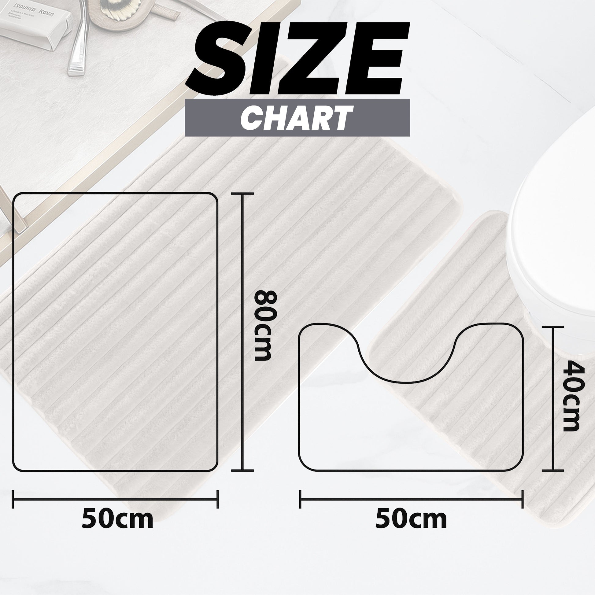 2 Piece Ribbed Bath Mat Set in Natural Extra Soft Non Slip Super Absorbent Bathroom & Toilet Mats Easy Care Rug by OLIVIA ROCCO