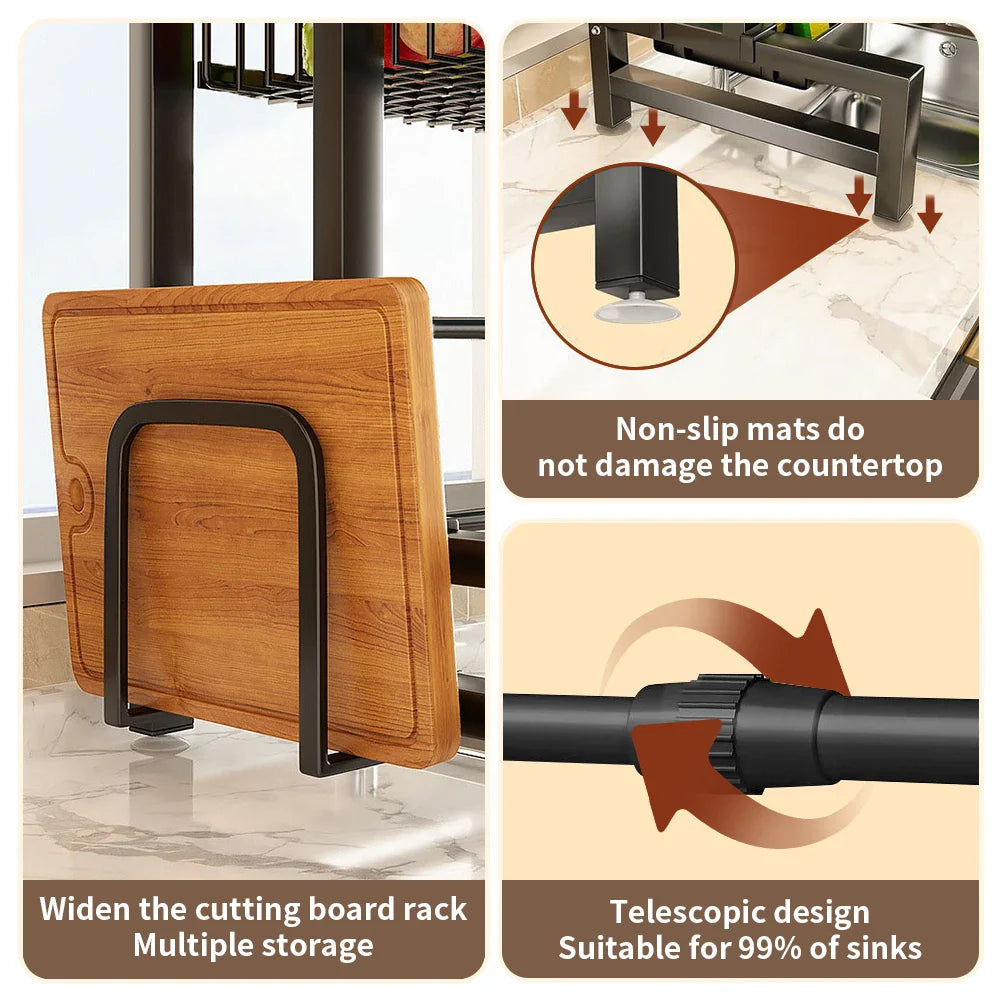 2 Tier Dish Drainer Stainless Steel Draining Dish drainer Multifunctional Black Dish Drainer Rack with Drip Tray for Kitchen Cou