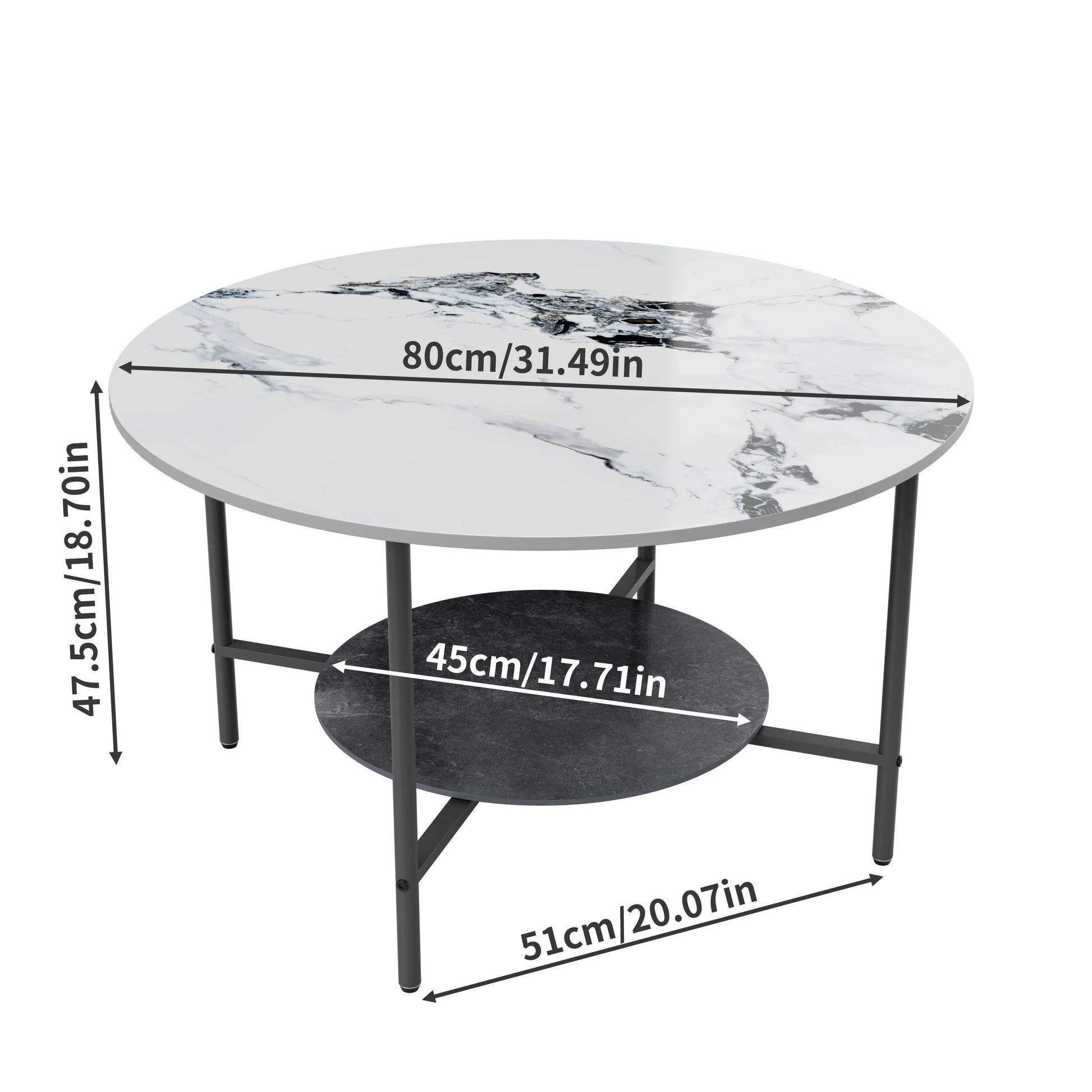 2 Tier Round Center Coffee Table with Sintered Stone-top and Storage Shelf Sofa Side Center Table Metal Frame