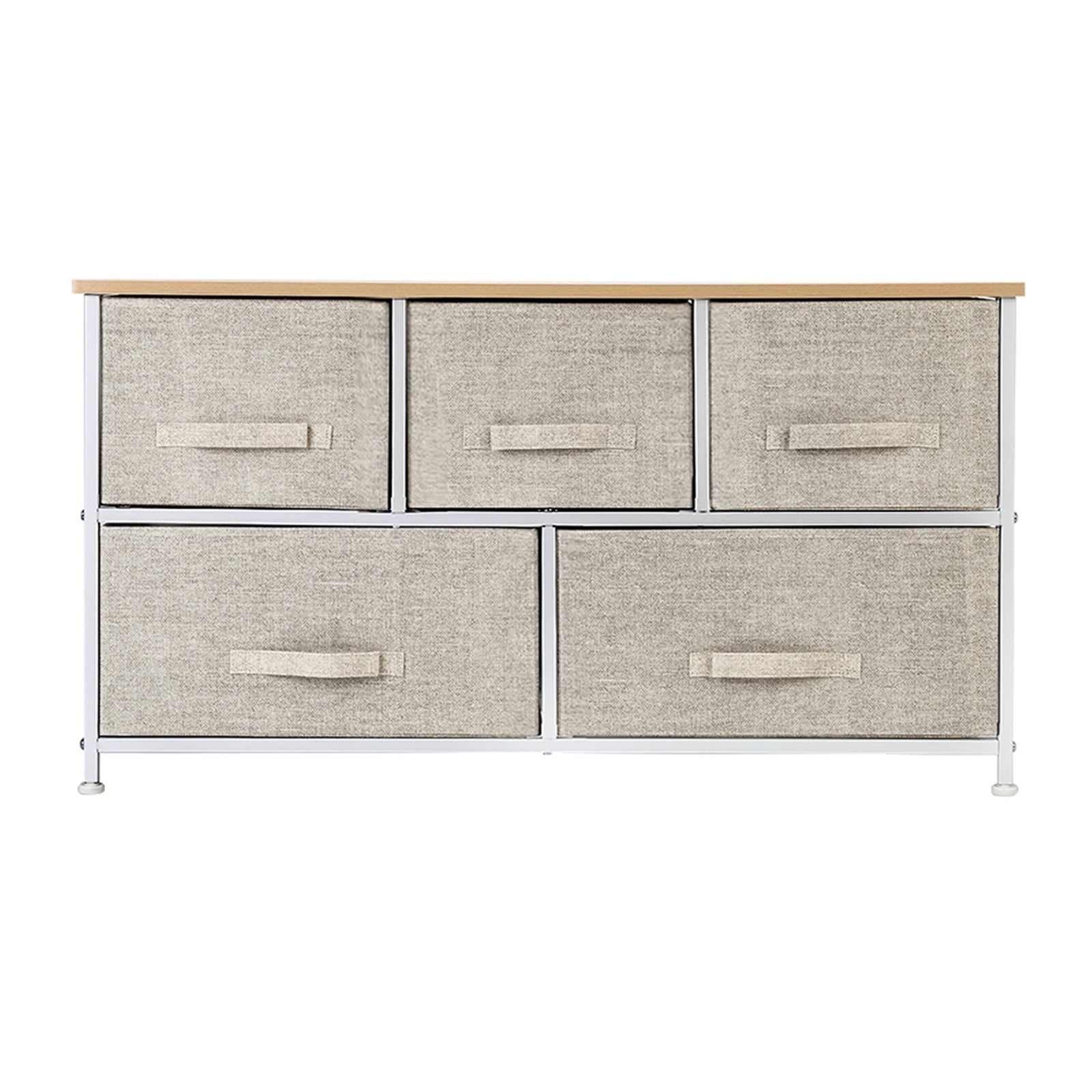 2-Tier Wide Closet Dresser, Nursery Dresser Tower With 5 Easy Pull Fabric Drawers And Metal Frame, Multi-Purpose Organizer Unit For Closets, Dorm Room, Living Room, Hallway, Linen/Natural
