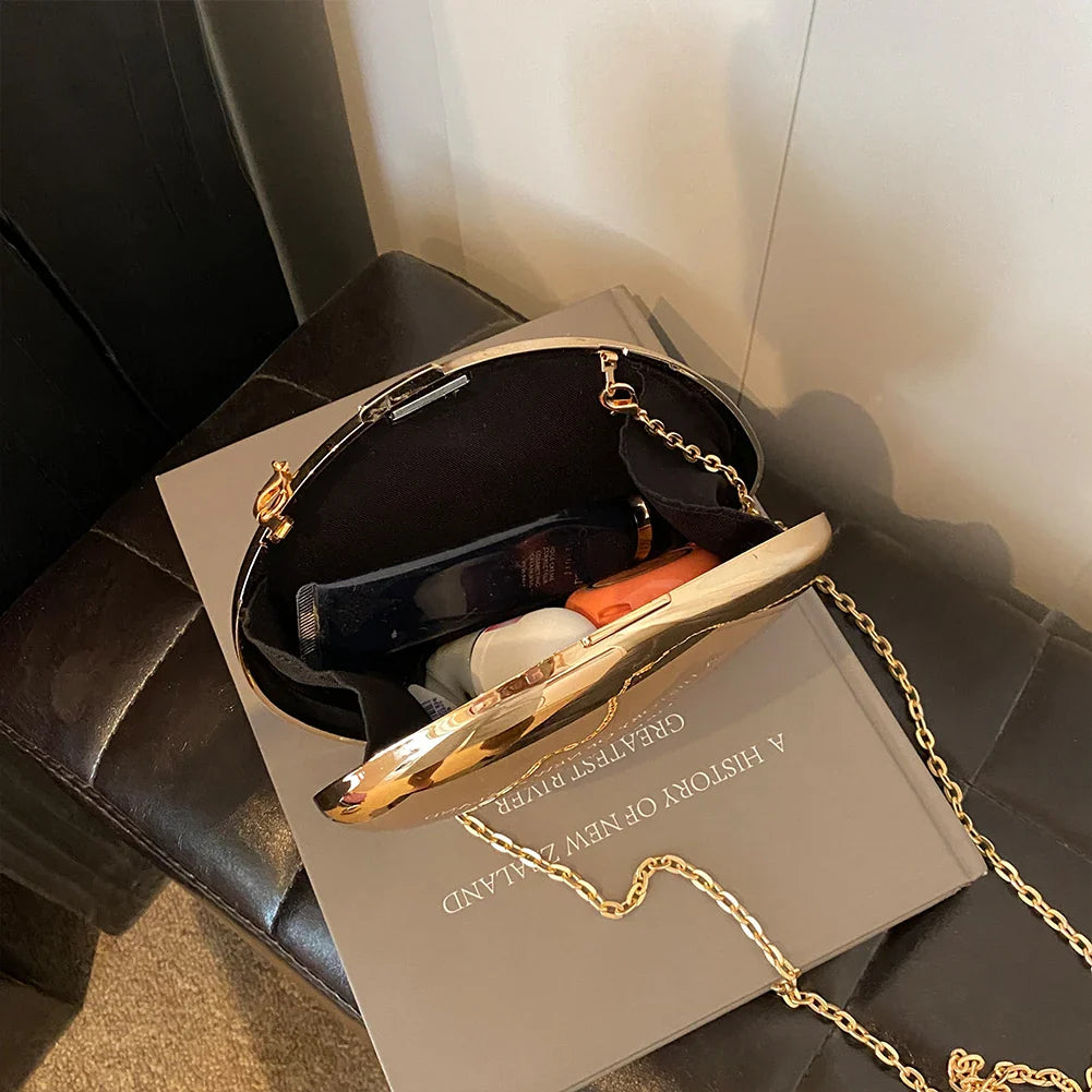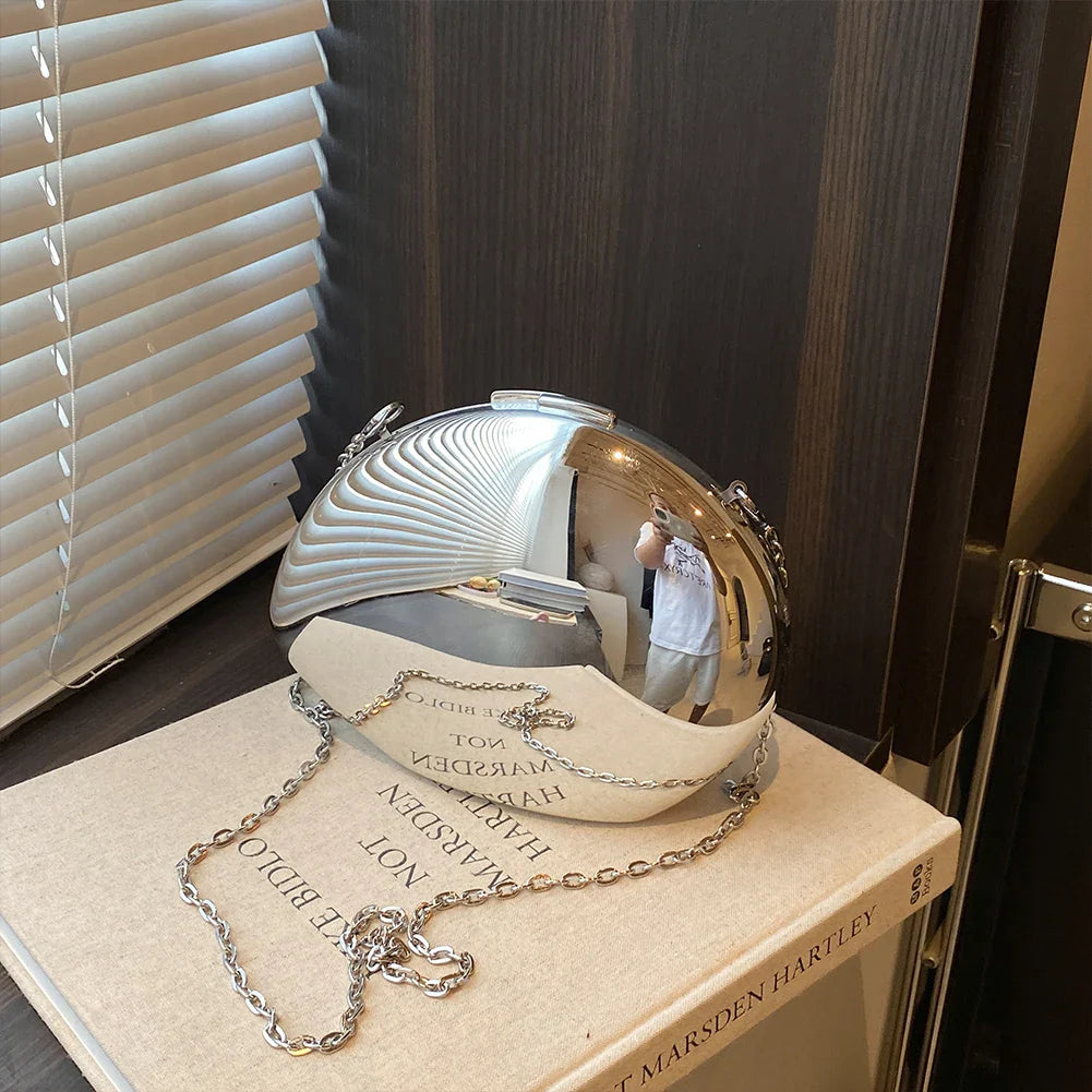 2024 Acrylic Shining Shoulder Bag Metal Oval Shaped Women Crossbody Bags Luxury Designer Handbag Novelty Clutch Purse with Chain