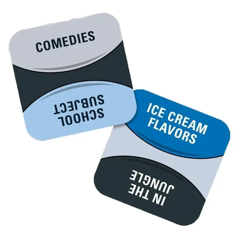 HOW TO PLAY - Choose a card with a category, press the timer, and shout out words related to the category that start with a certain letter. Once the related word is announced, press the corresponding letter tab.