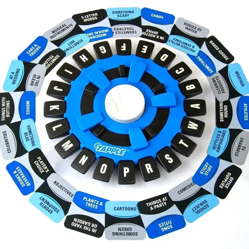 Includes 1 Tapple wheel with built-in timer, 36 cards (144 categories), rules