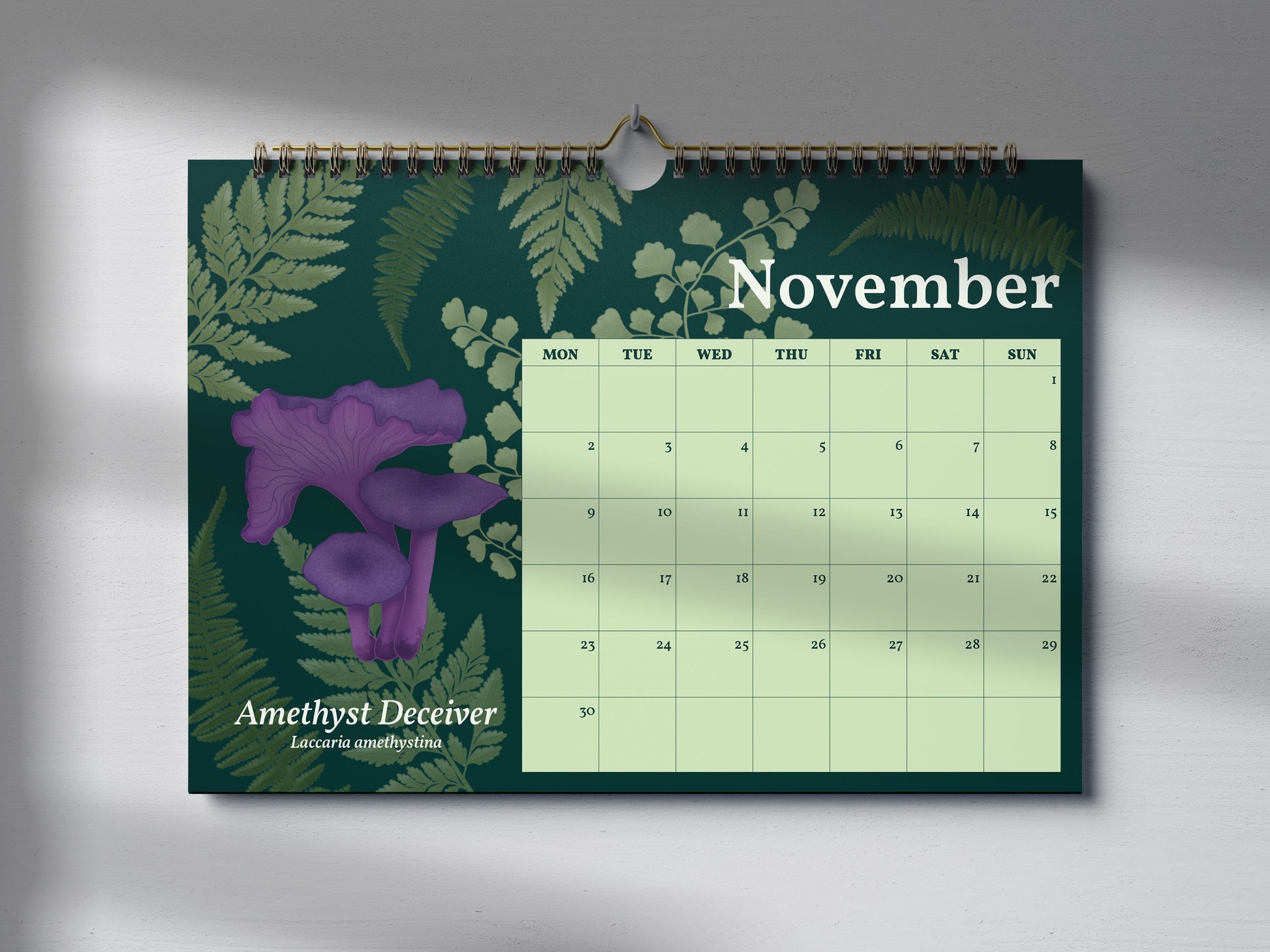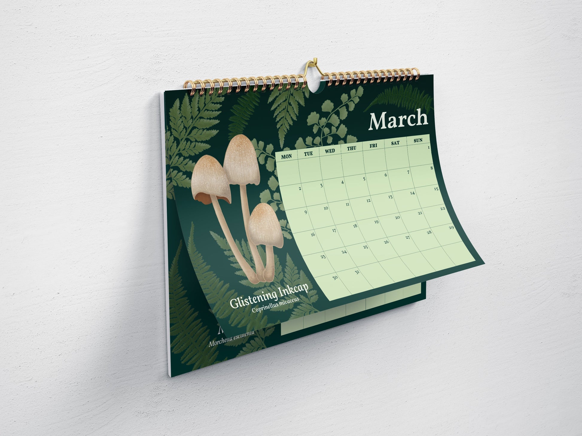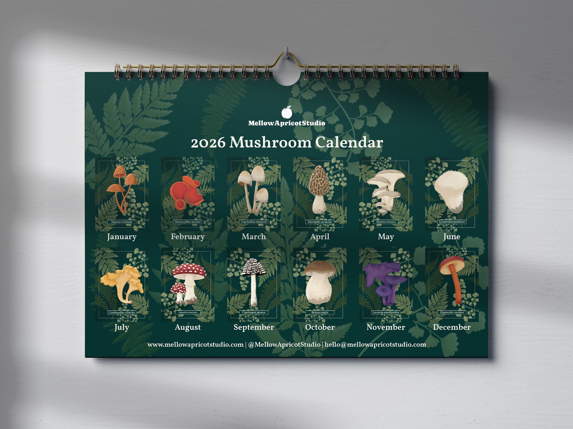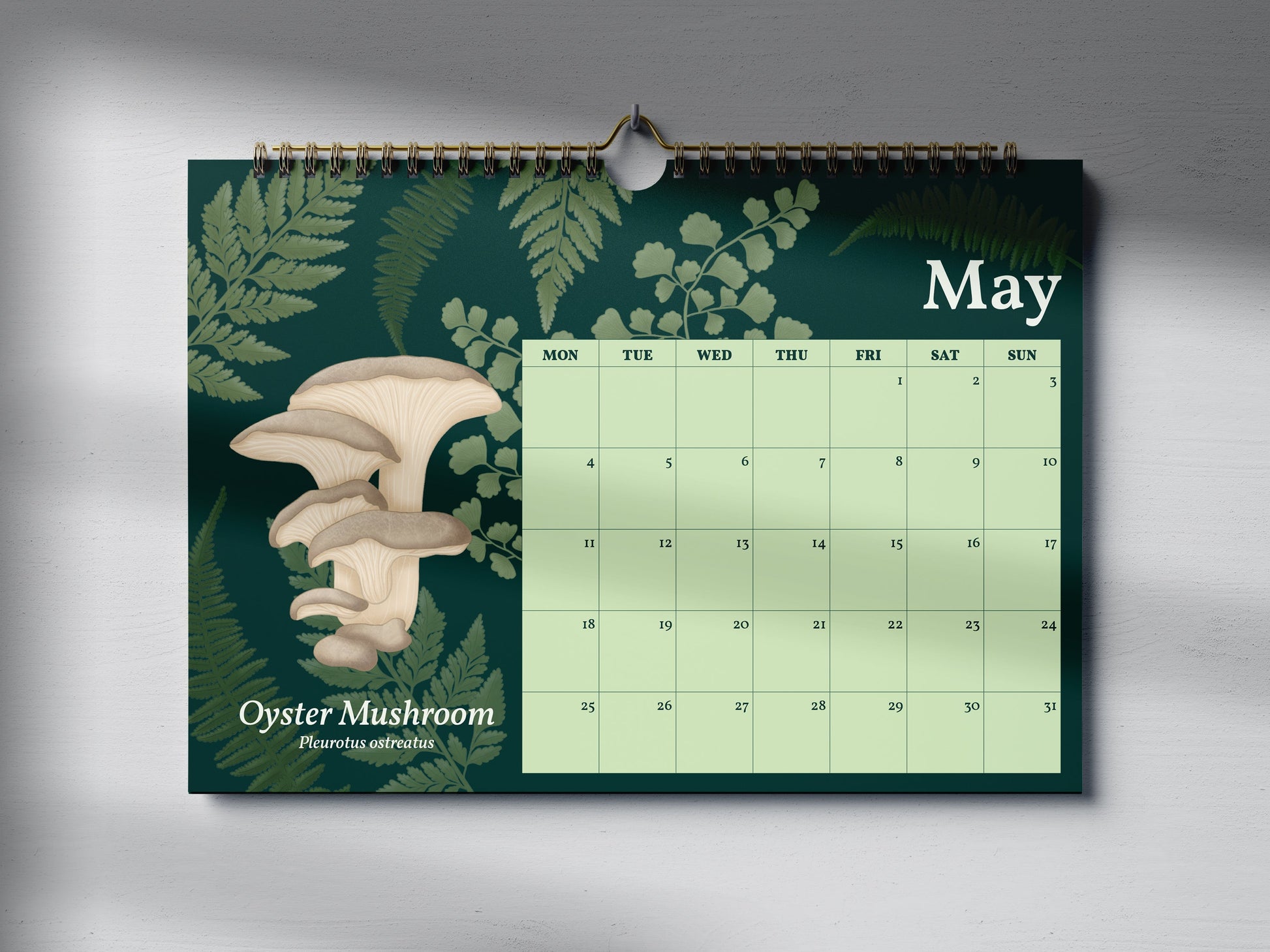 This 2026 calendar features 12 mushrooms which can be found in Great Britain including fly agaric, chanterelle, oyster mushroom and many more.