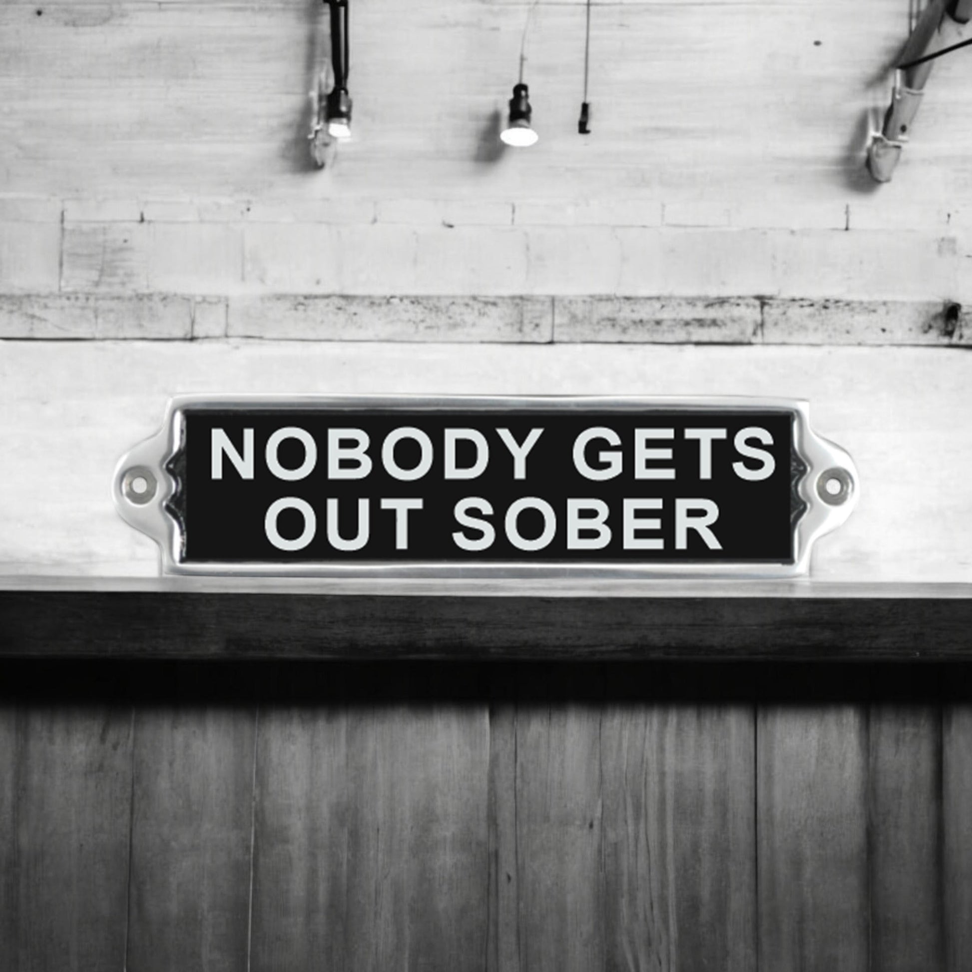 20CM ALUMINIUM NOBODY GETS OUT SOBER SIGN