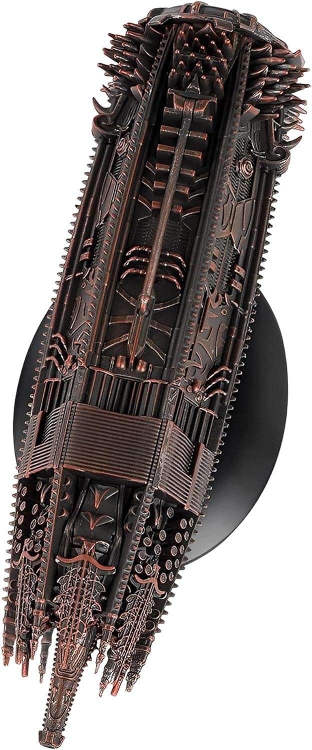 This Star Trek die-cast Klingon Daspu' Class starship model recreates the starship as seen in the first season of Star Trek: Discovery. It has a cylindrical shape and is beautifully decorated with the gothic style shapes reminiscent of Gothic Cathedrals.