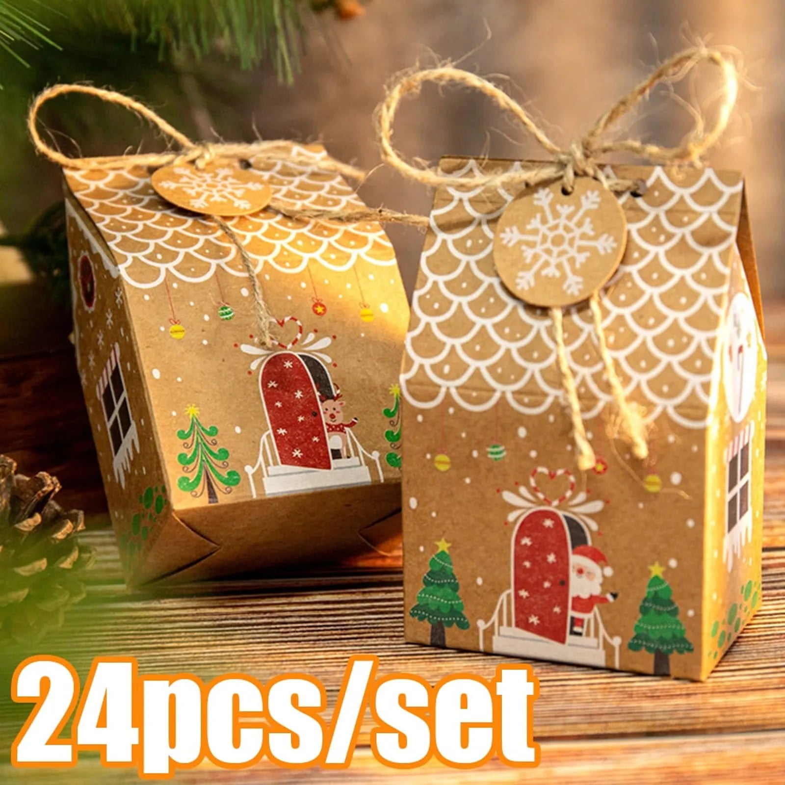 24pcs Christmas Party Gift Package Boxes Bags Christmas Paper Gift Bag Craft Paper Candy Boxes Xmas Assortment Party navidad