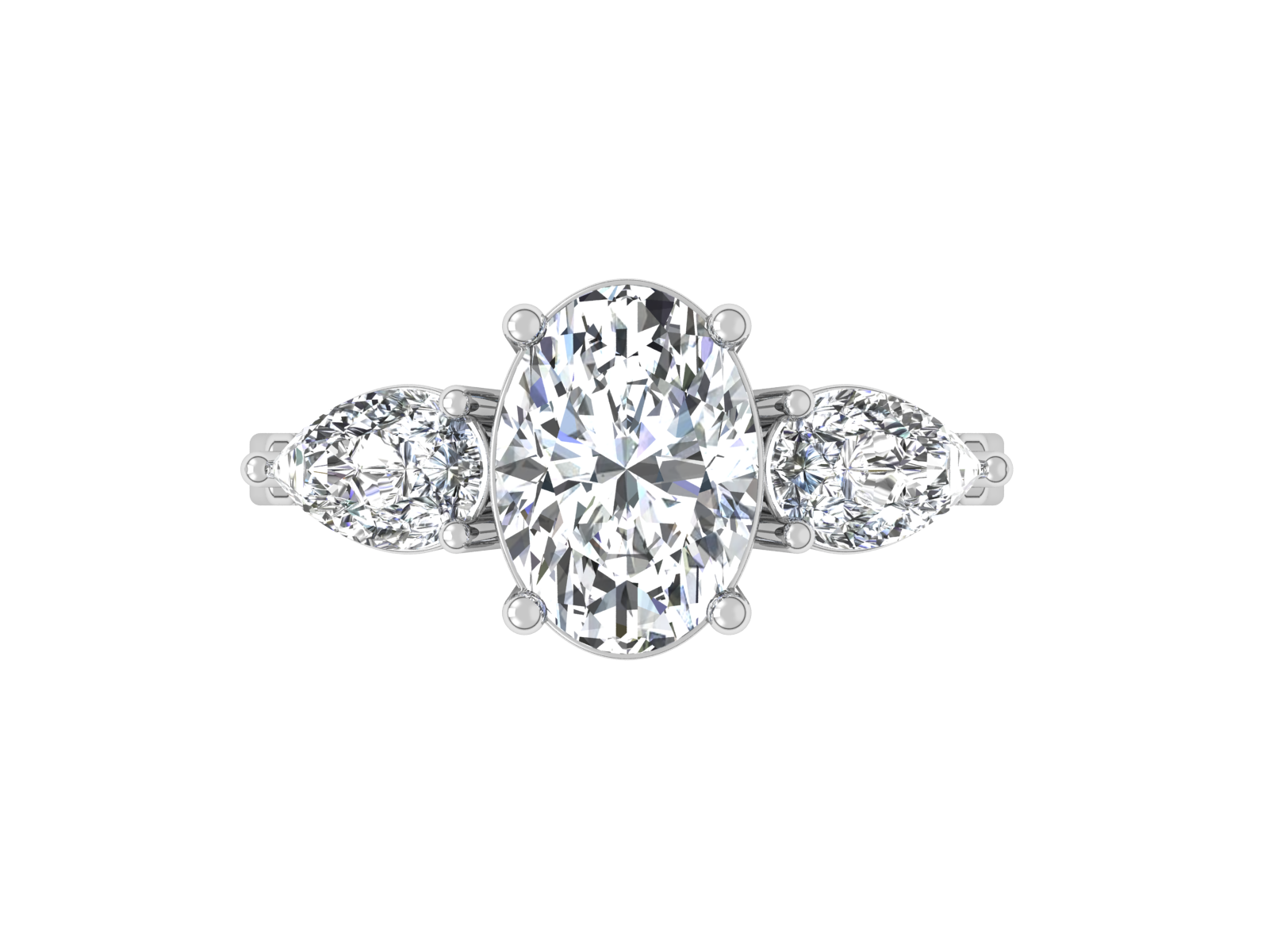 2ct - Oval Diamond with Pears Accent Trinity Ring