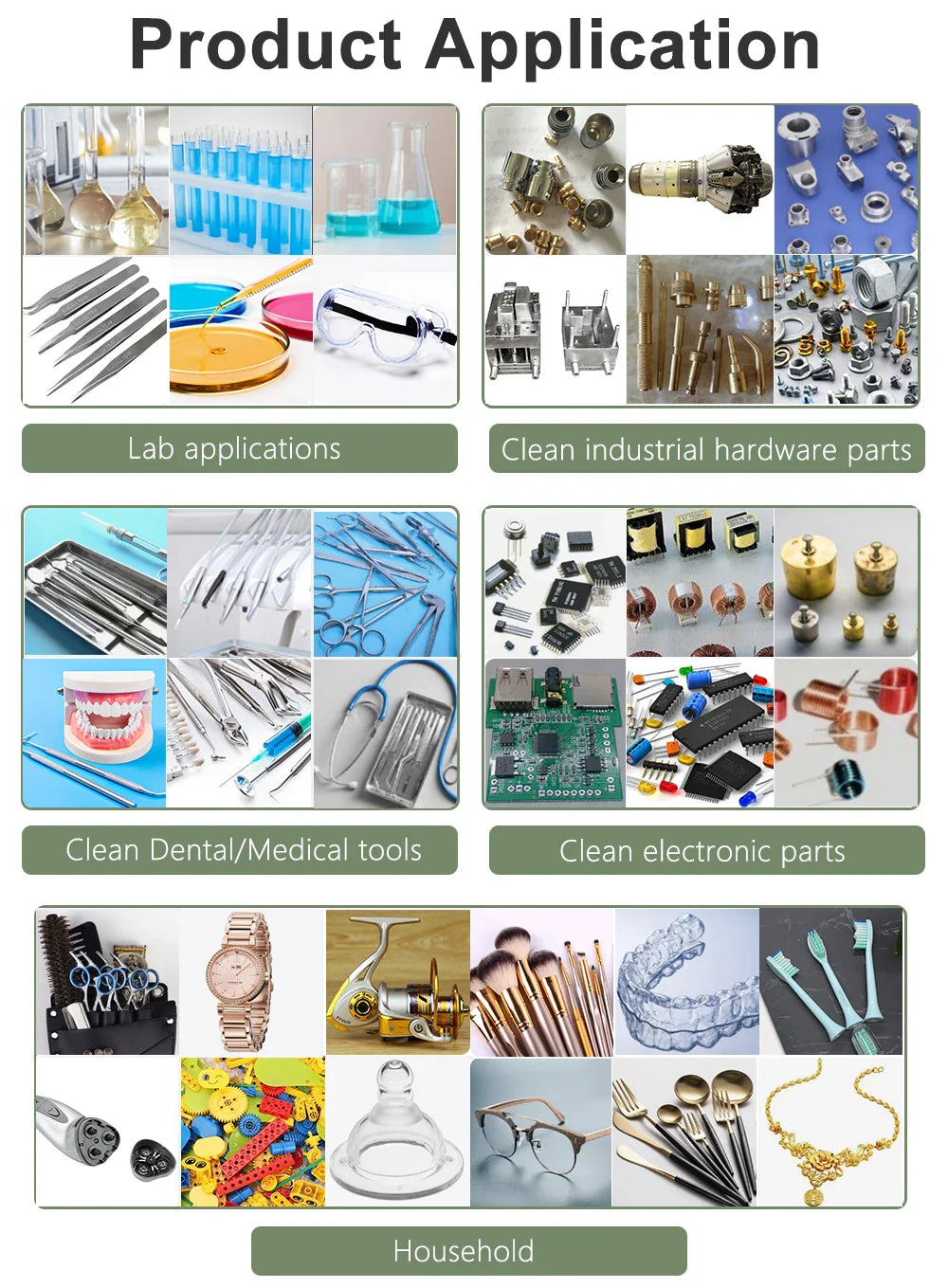 application: cleaning dental jewelry watch glasses accessory auto parts motherboard bike chain braces nail tools electronics element eyewear engine eraclean parts aligners etc..
