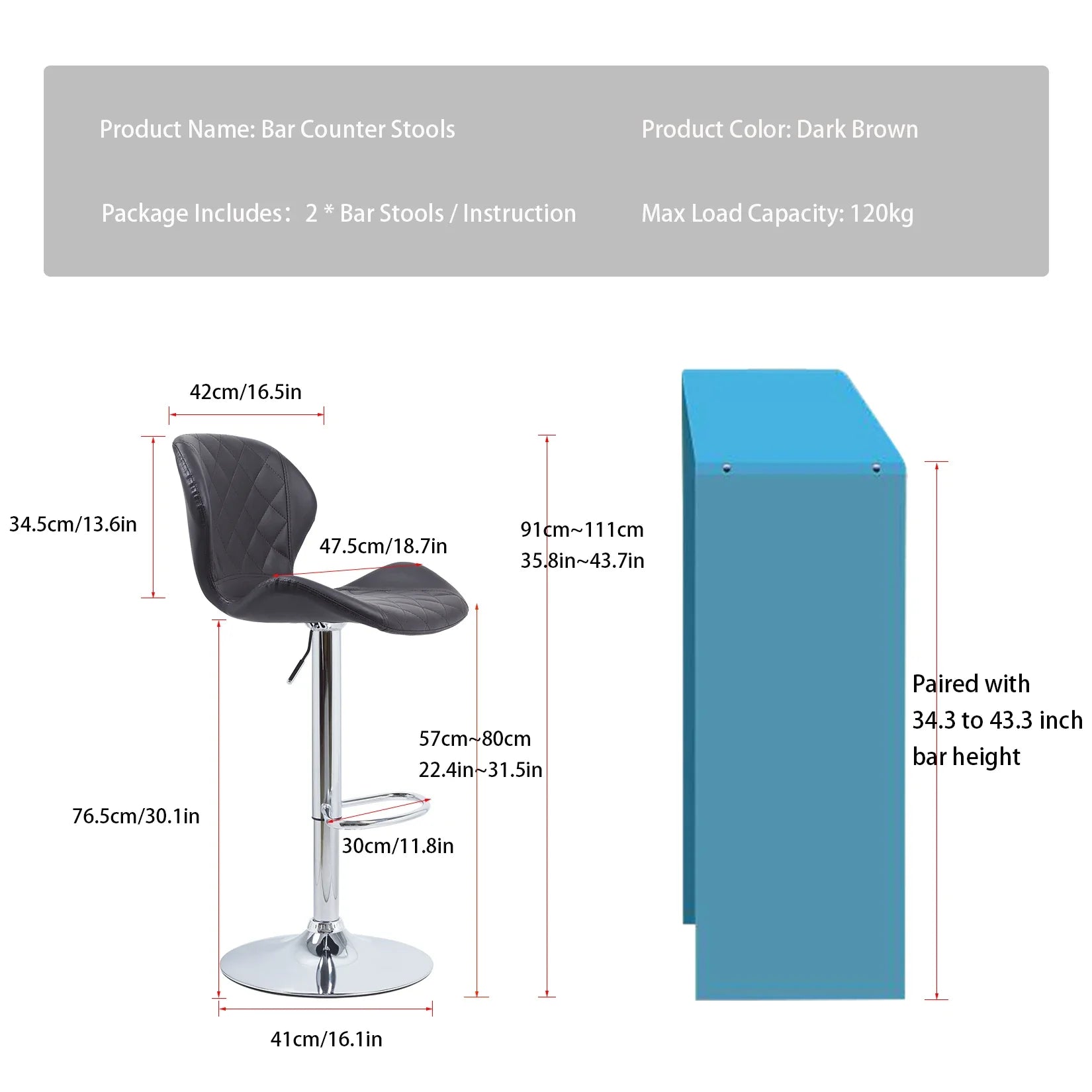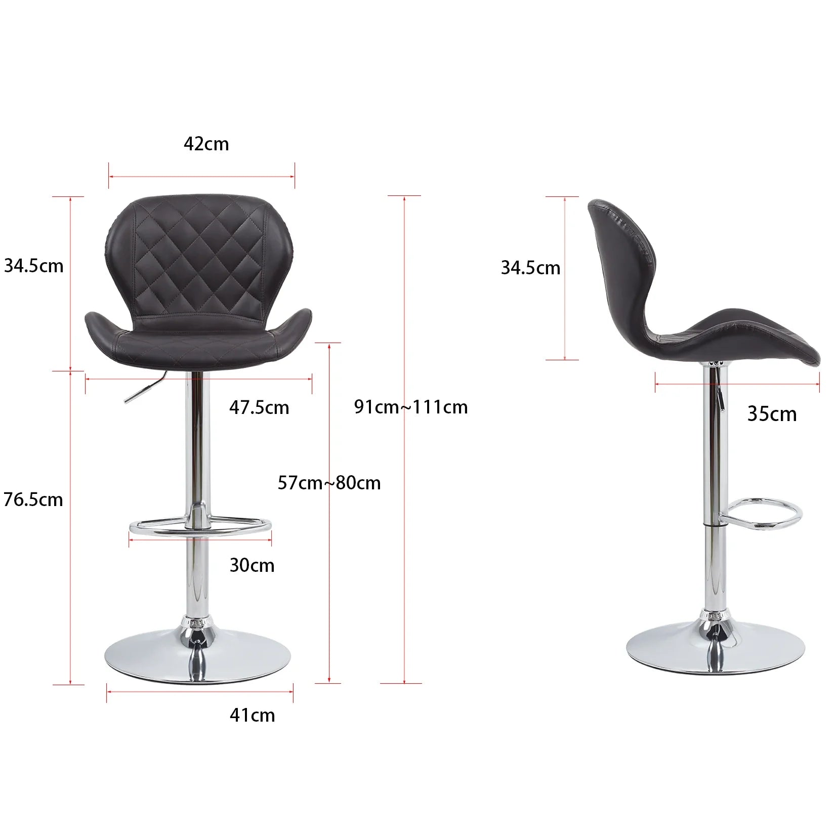 2x Faux Leather Bar Stools Gas Lift Swivel Chrome Metal Base Breakfast Kitchen Chairs Pub
