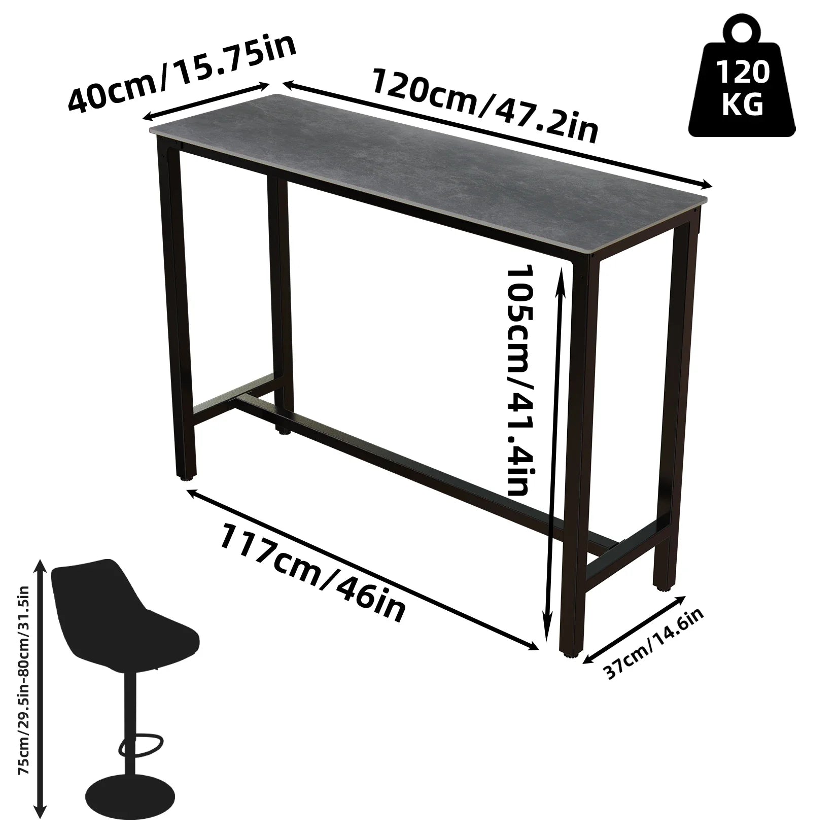 Size: 47.24x15.75x41.34 in
