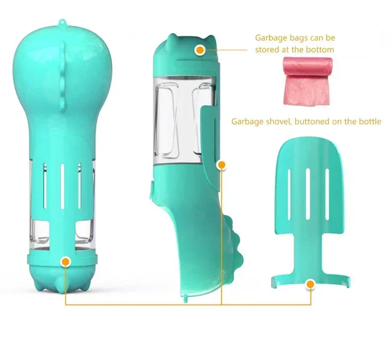 3 in 1 Portable Dog Water Bottle Pet Food Feeder Drinker Poop Dispenser Leak-proof Multifunctional Dog Water Bottle Dog Feeder