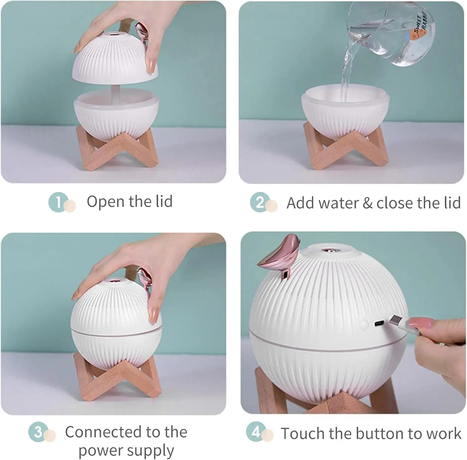 3-in1 Quiet Bird Humidifier 3 Colors Night Light USB Mini Aromatherapy Diffuser 2 Spray Modes Kid Birthday Gift Home Decor 330ml