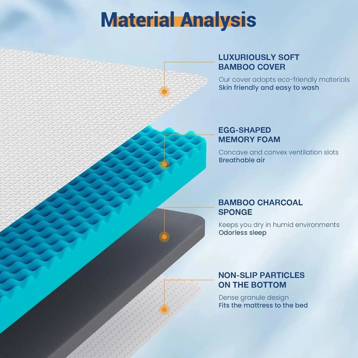 3 Inch Memory Foam Mattress Topper Double Bed,7.5cm Thickness Mattress Topper for Back Pain Relief w/ Washable Bamboo Cover