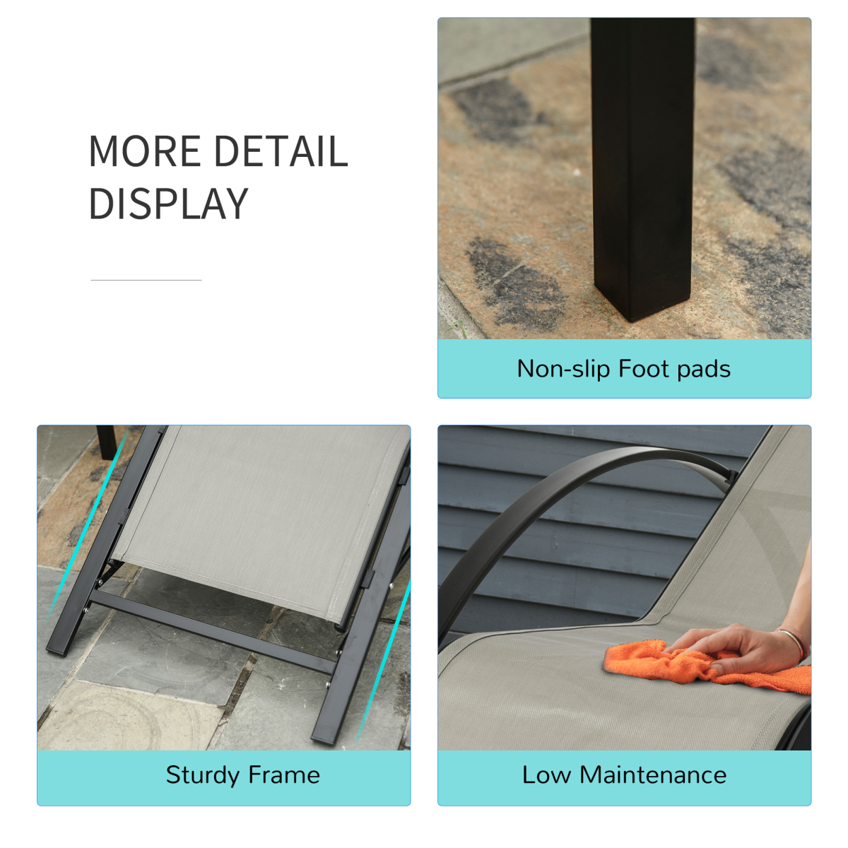 3 Pieces Lounge Chair Set Garden Sunbathing Chair w/ Table Grey Outsunny