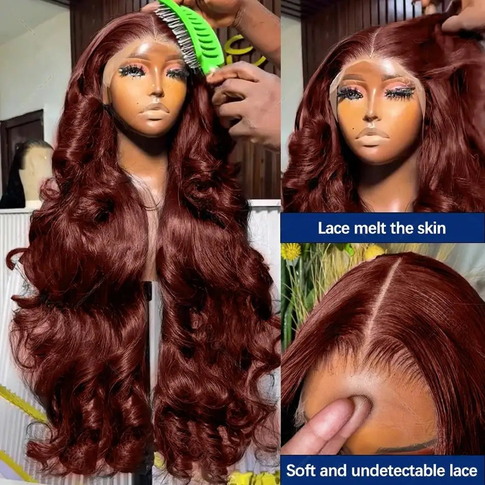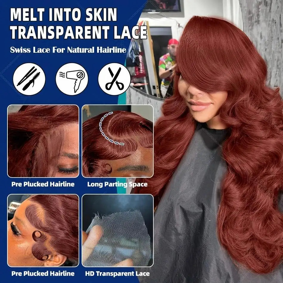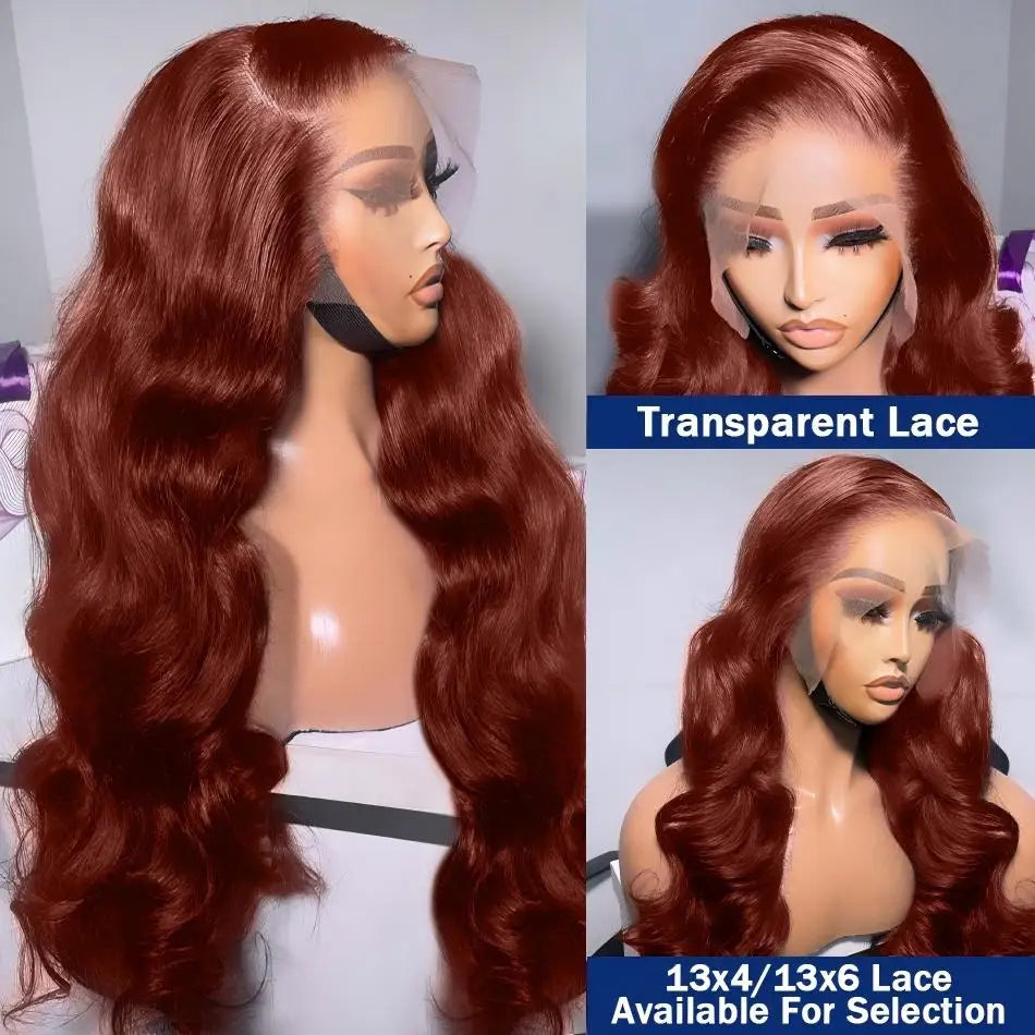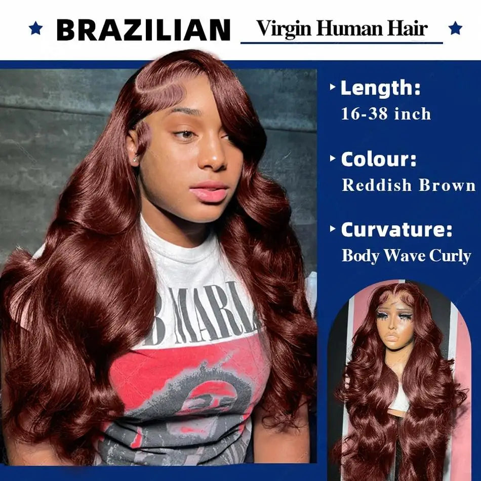 30 32 Inch Brazilian Reddish Brown 13x4 13x6 HD Lace Front Wigs Human Hair Body Wave 250% Colored Lace Frontal Wig For Women