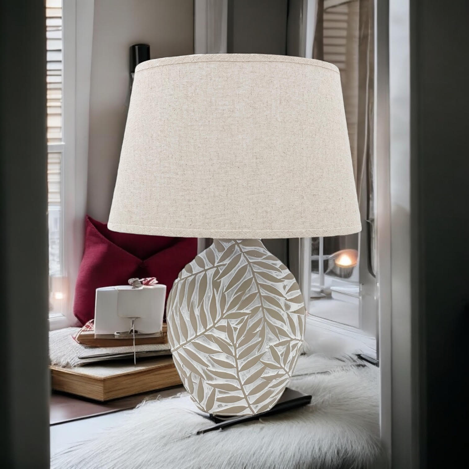 A traditional design table lamp base and shade. The lamp is individually switched by an inline rocker switch and is double insulated to allow for safe use without need of an earth wire. Great for lighting in any setting and ideal in a living room or bedroom., In Line switchHigh Quality Shade