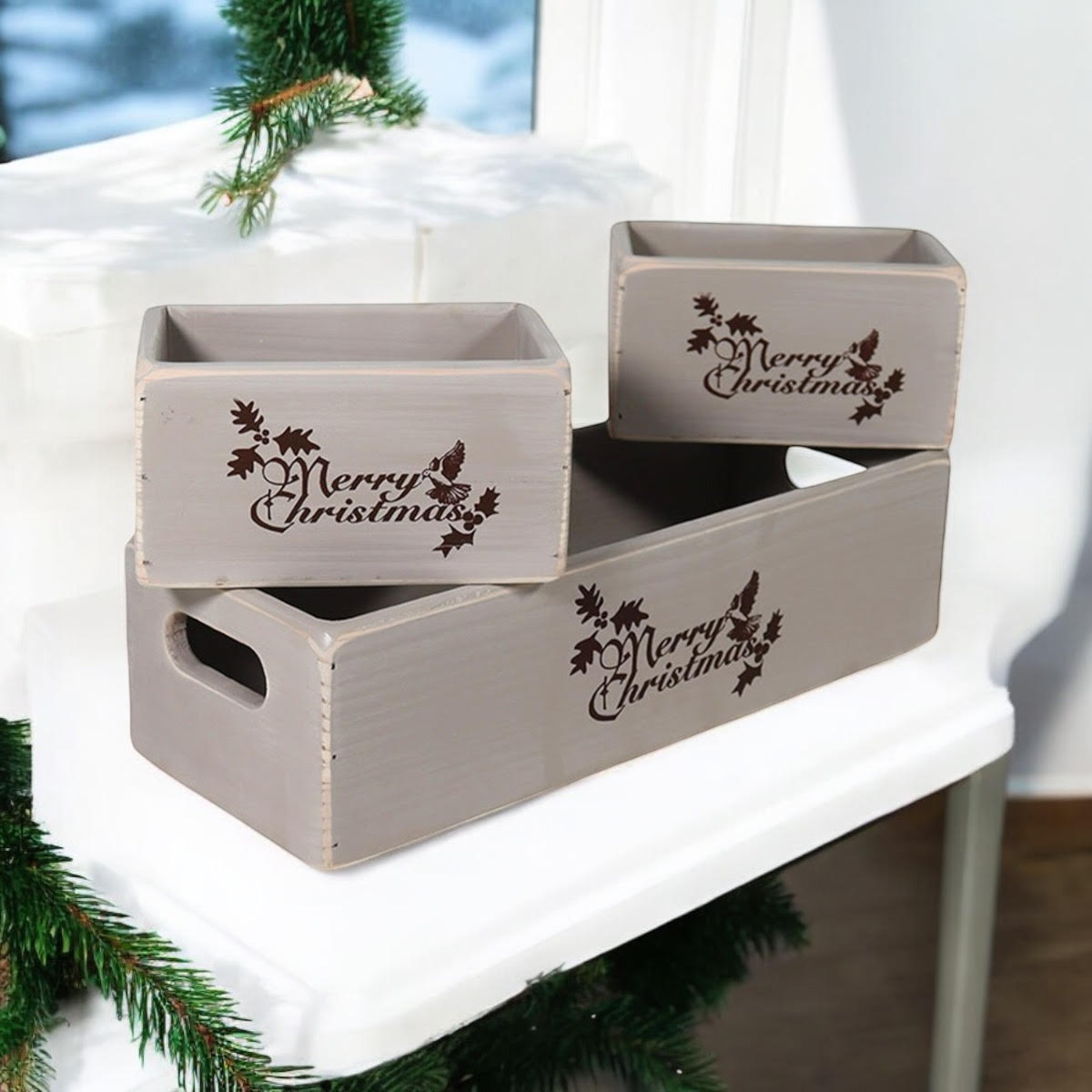 A beautiful set of Christmas boxes for a lovely tradition to be reused every year on the night before Christmas. The wooden box is supplied ready to fill with lots of festive treats and goodies to delight your little one with a special delivery from Santa!, Set of 3Hand Finished