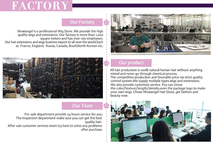 3.Hair quality:100% Human Hair, No tangles, no shedding, can be dyed, permed, curled, straightened, durable and silky.