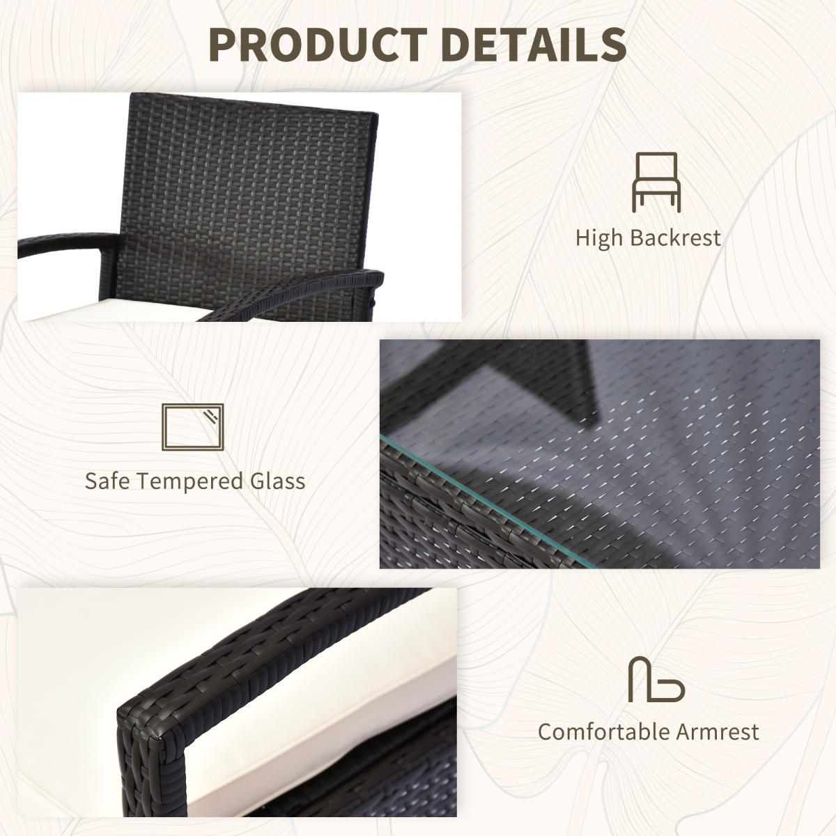 3PC Garden Rattan Bistro Set Balcony Dining Table 2 Seater Chair Outsunny