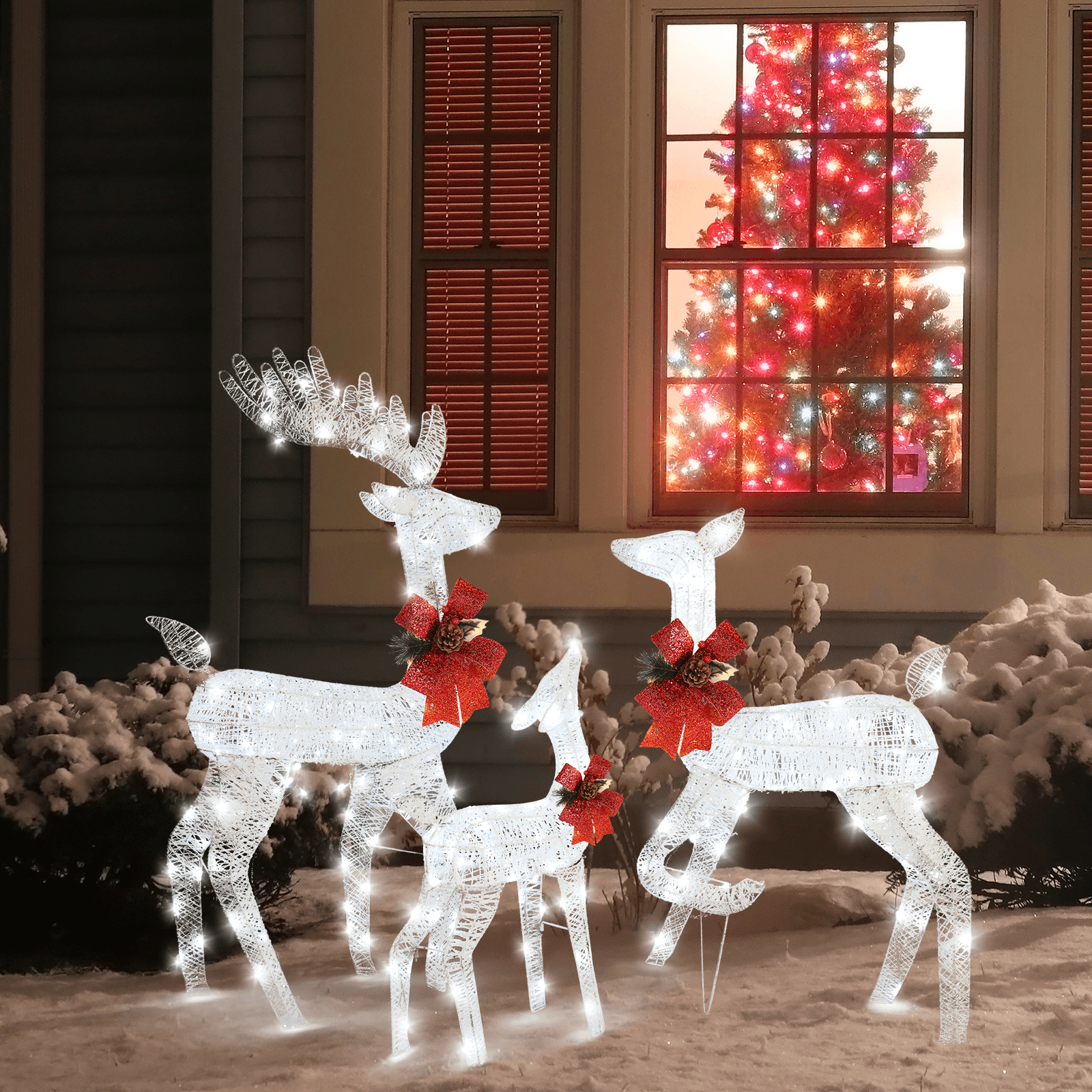 3pcs 54*38*122cm 30.00V 3.60W Family Elk White Iron Frame Cotton Thread Green Onion Powder Courtyard Elk Decoration