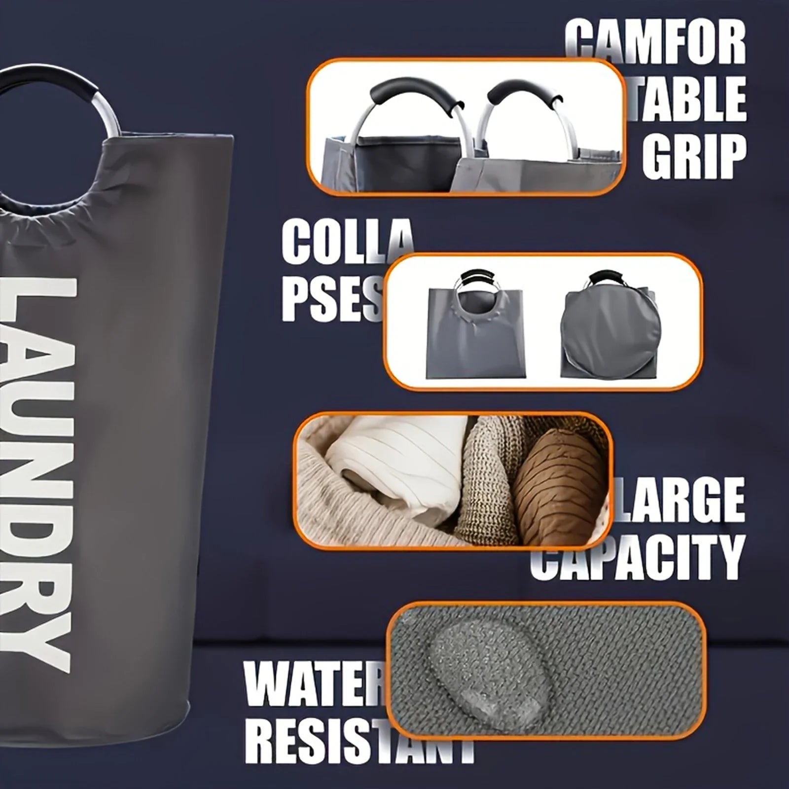 3pcs 90L Large Laundry Basket, Laundry Bag with Padded Handles, Waterproof Clothes Bin Collapsible, Clothes Hamper for Bathroom