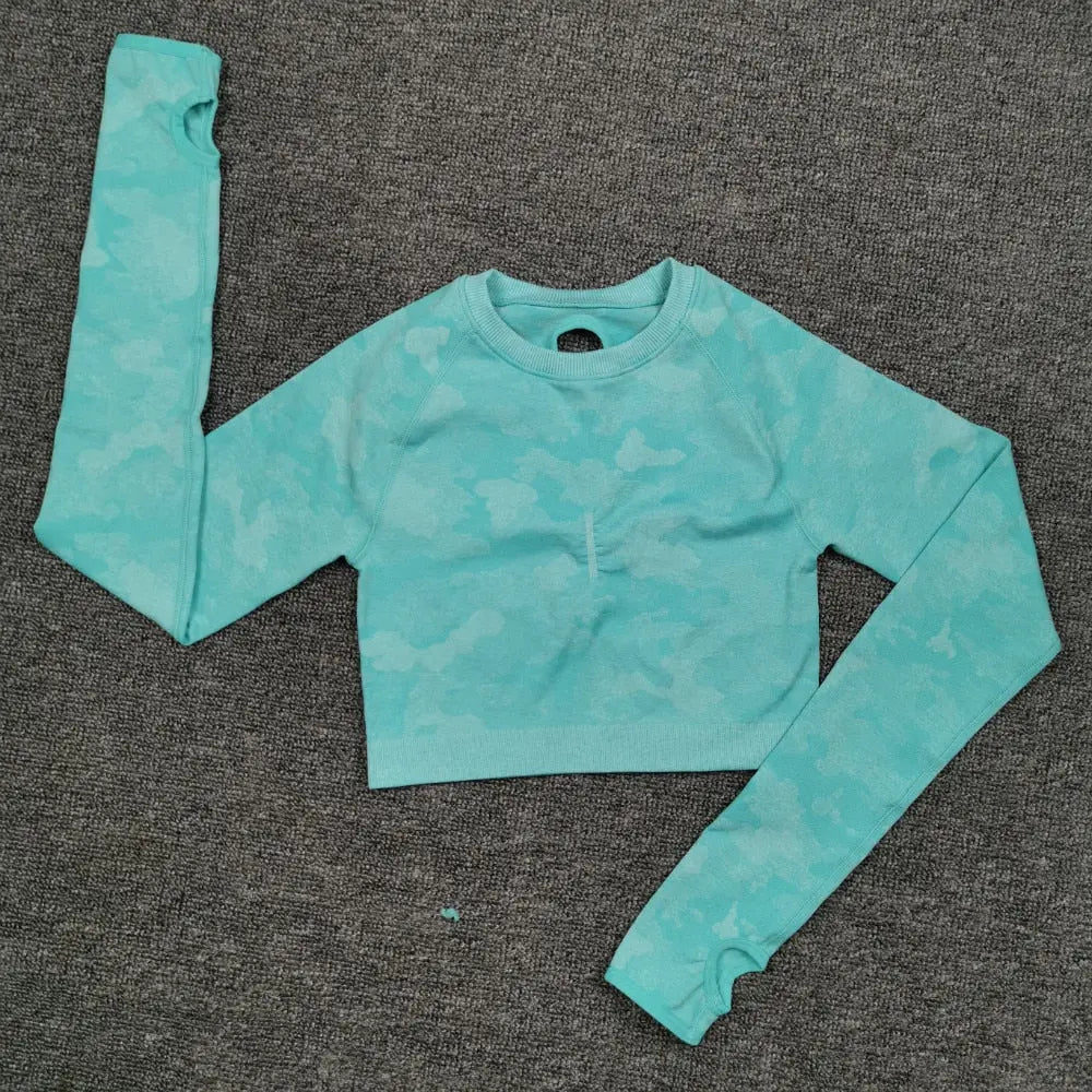Crafted with high-quality materials, this yoga set offers a trendy camouflage print that not only looks great but also provides excellent performance in the gym. The seamless design minimizes chafing, ensuring that you can focus on your workout without distractions.